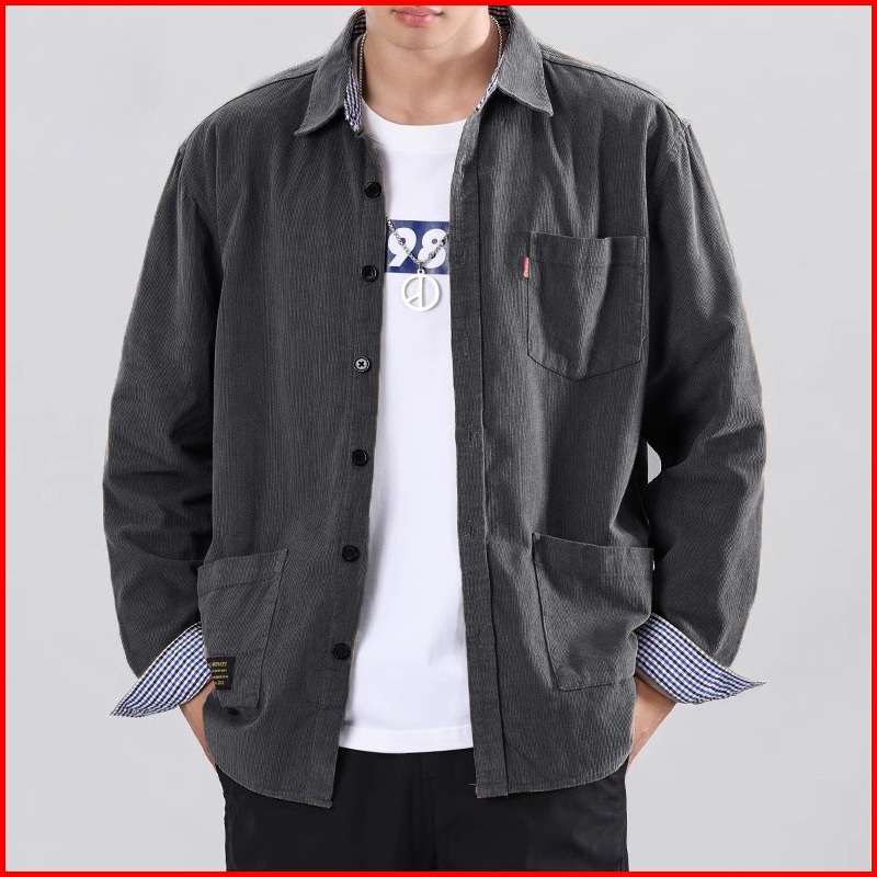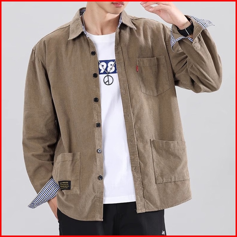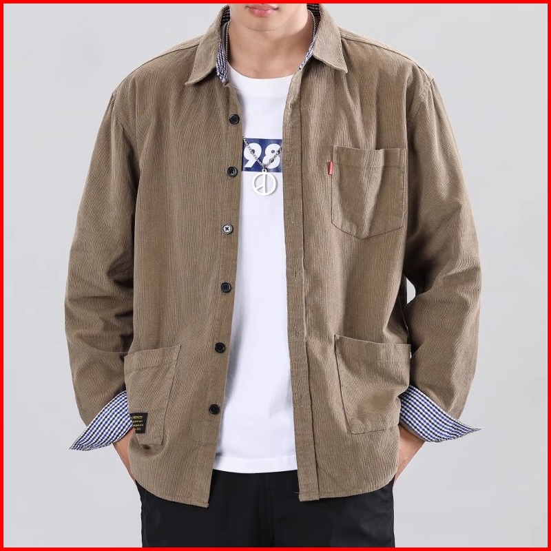 Keyboy Jacket Corduroy Pria Kerah Corduroy Panjang Outer Cowok Tebal Jacket Casual Jacket Korean Style