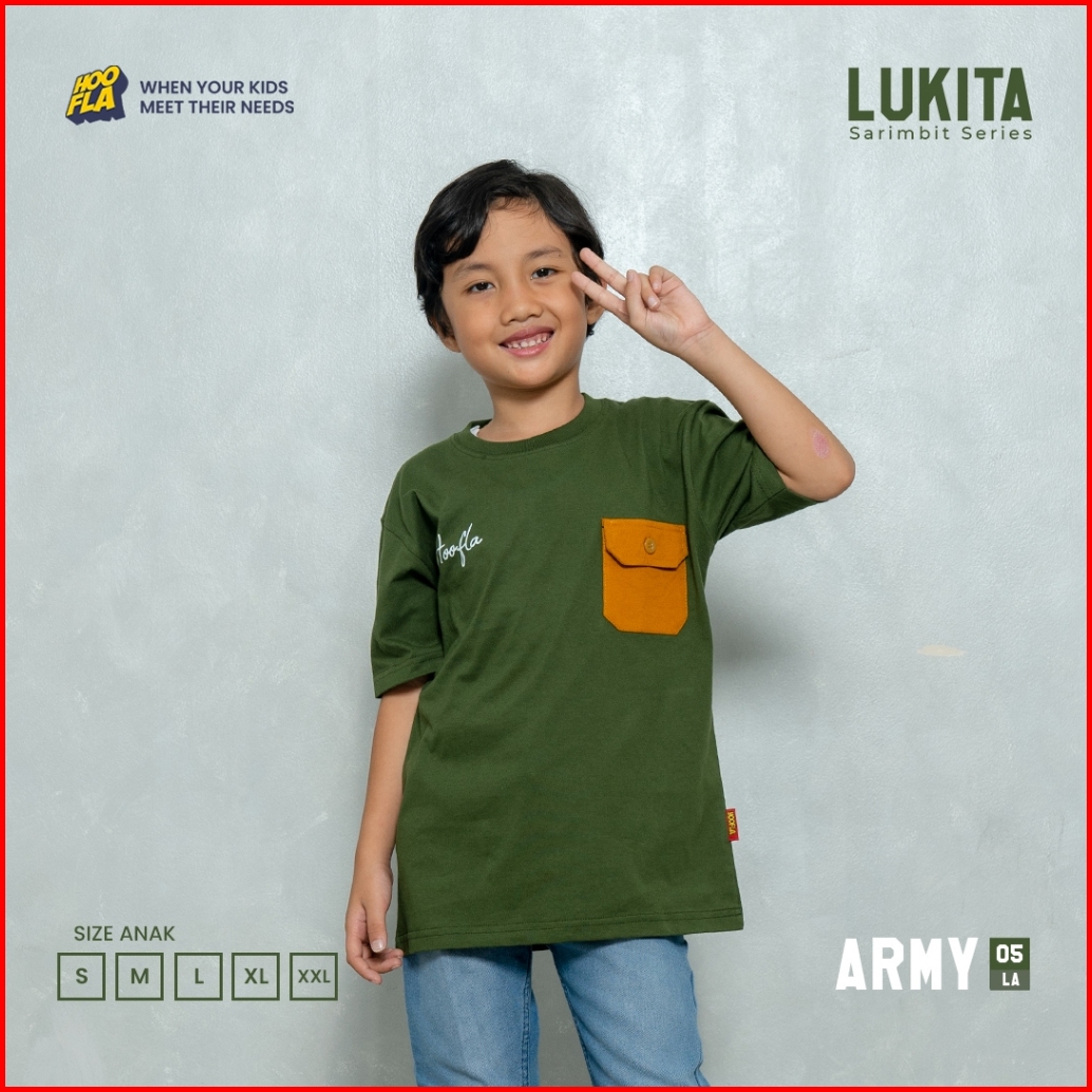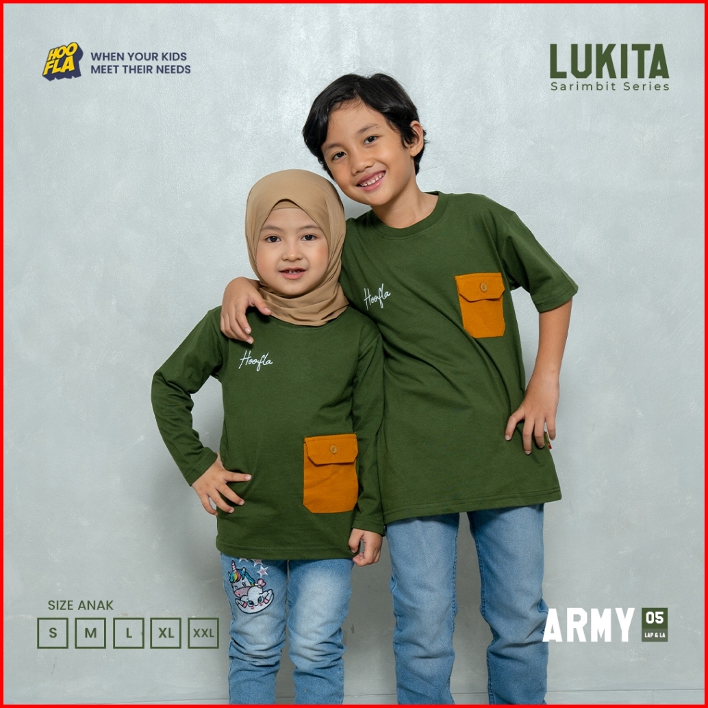 Hoofla Kaos Couple Anak 3-12 Tahun Baju Casual Lukita Sarimbit Series Army