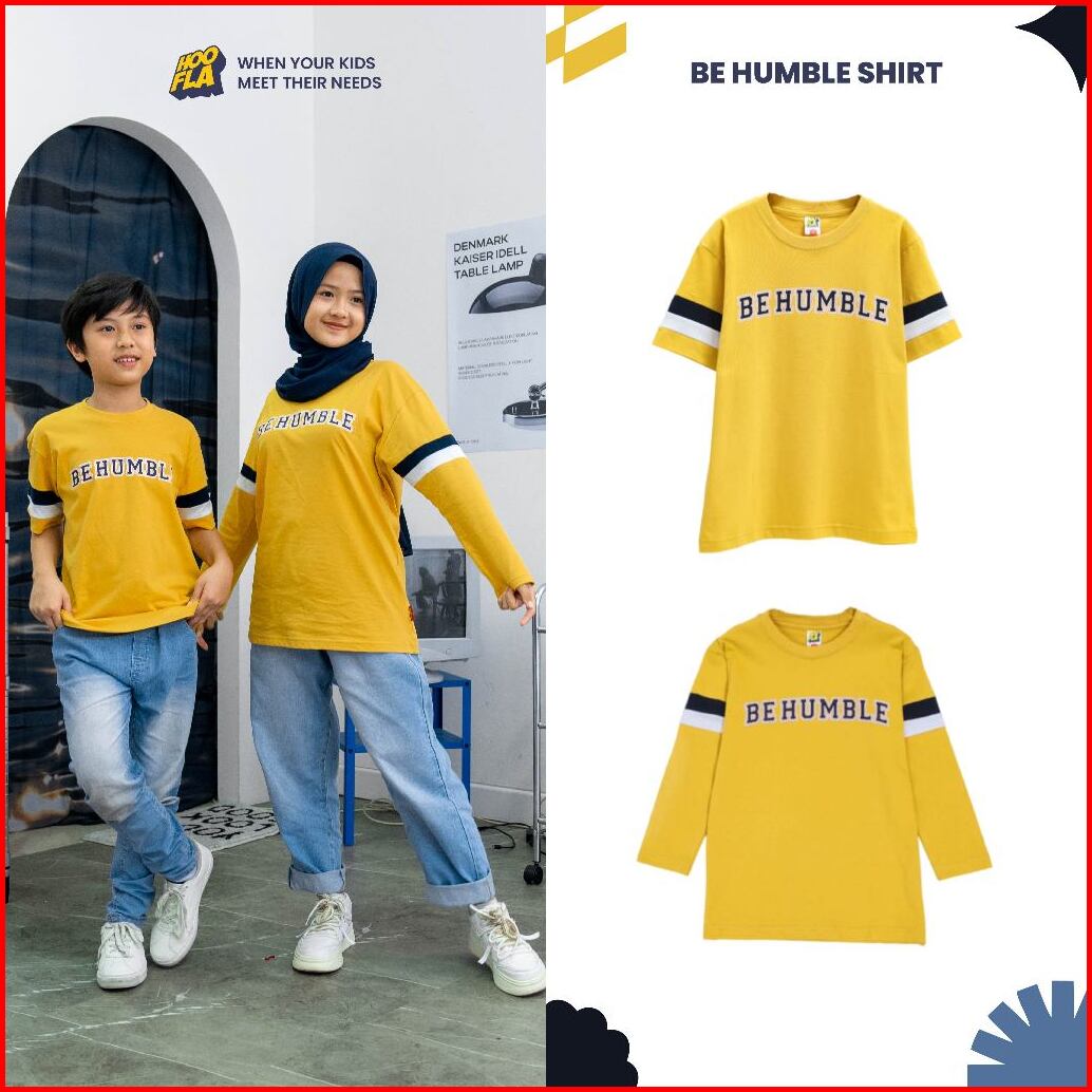 Hoofla Be Humble Tees Kaos Anak 3-12 Tahun Baju Casual Mustard