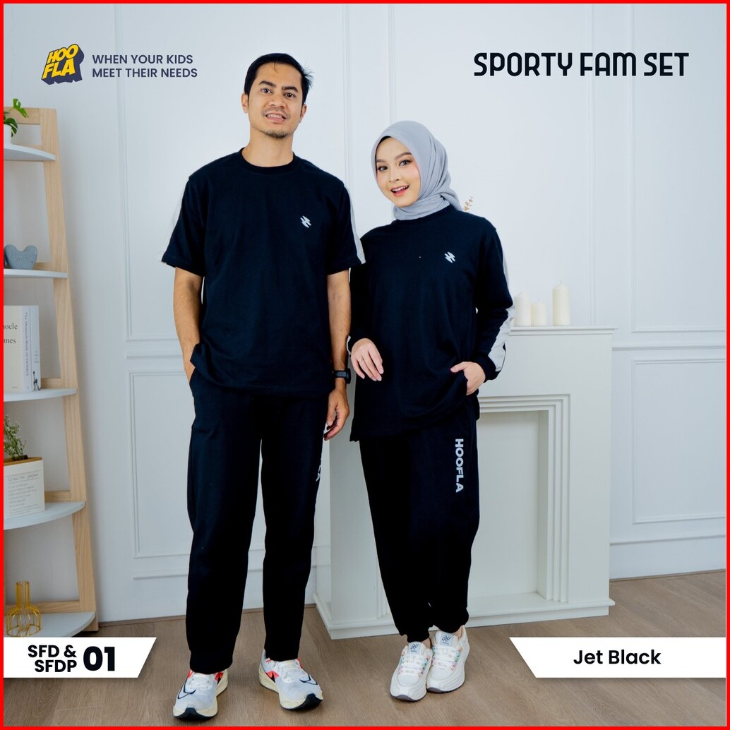 Hoofla Setelan Couple Keluarga Baju Olahraga Sporty Fam Set Jet Black