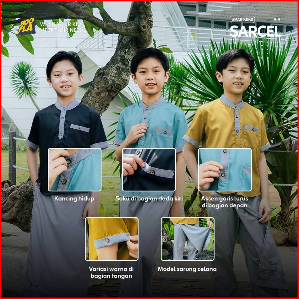 Hoofla Setelan Baju Koko Sarung Celana Anak Laki Laki Usia 3-12 Tahun Umar Koko Sarcel