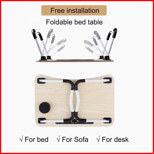 Meja Lipat Belajar Jumbo 60x40 Meja Laptop Polos Anti Slip Mdf Kayu Kokoh