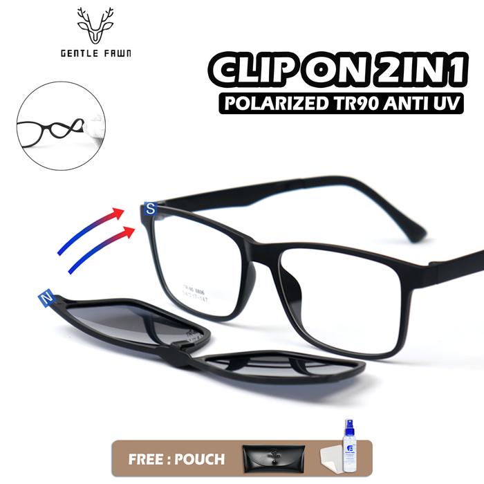 GRAY PINK CLIP ON KACAMATA DESIGN KOTAK TERKINI TR90 UNISEX 8006 - FULL BLACK