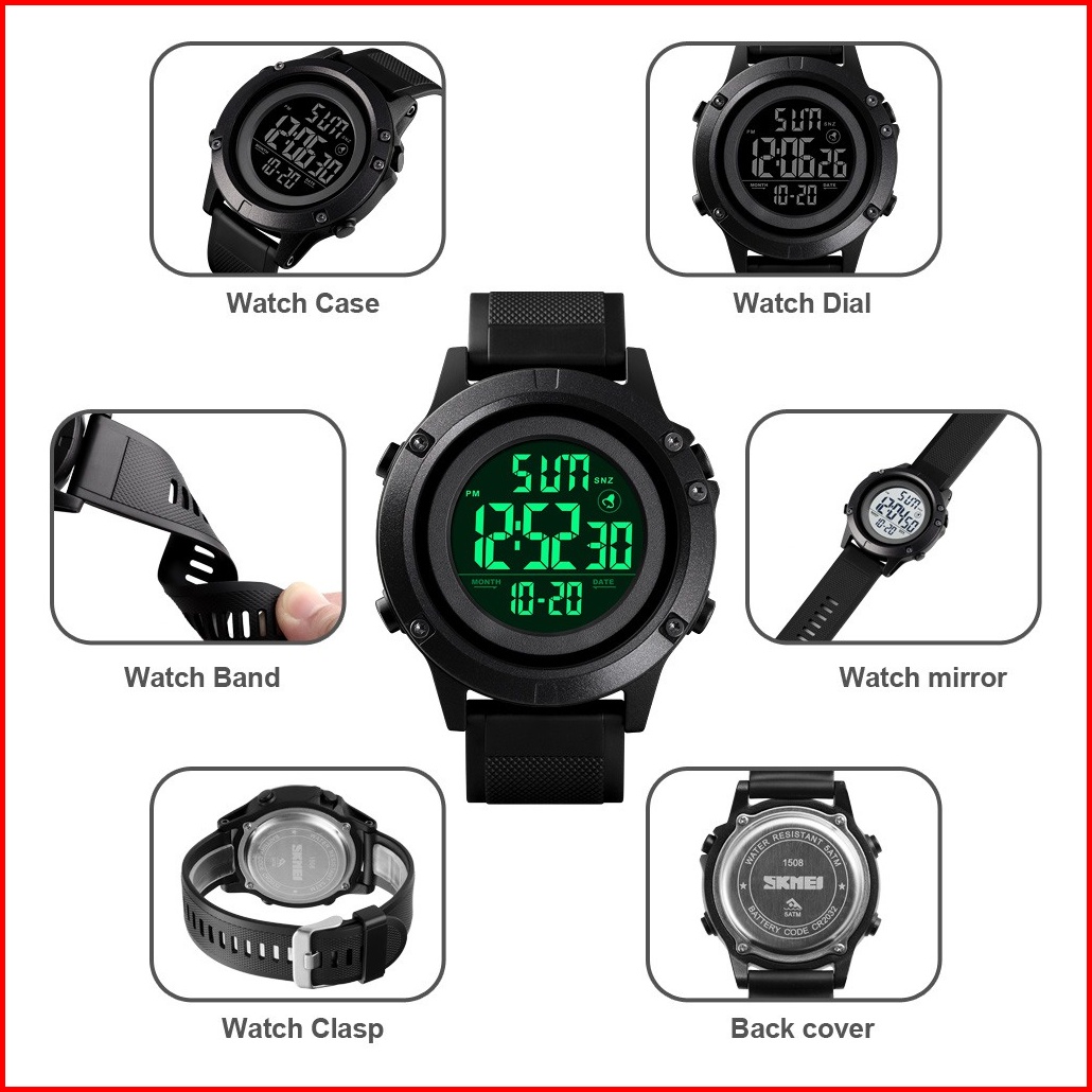 Jam Tangan Pria Digital Skmei 1508 Black Water Resistant 50m