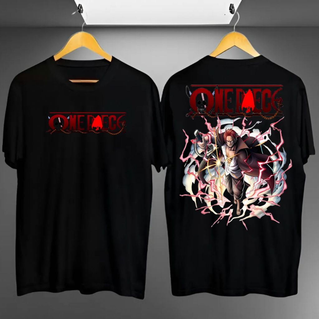 UNIQUESO - Kaos Distro Hitam Lengan Pendek Luffy One Piece Atasan Oblong Anime Pria Wanita Terkini