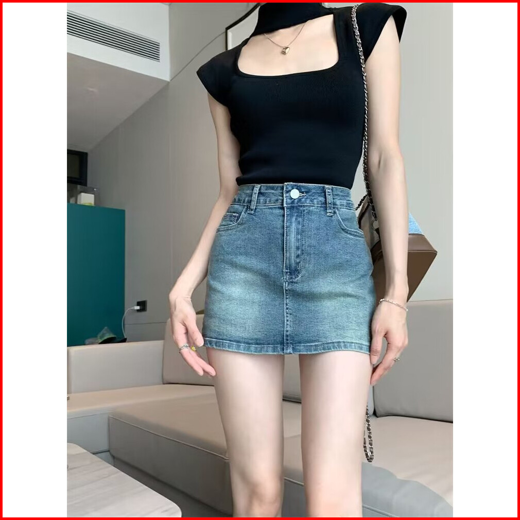 S-6xl Rok Mini Jeans Pendek Wanita Korea High Waist Slim Fit A-line Denim Bodycon Terbaru