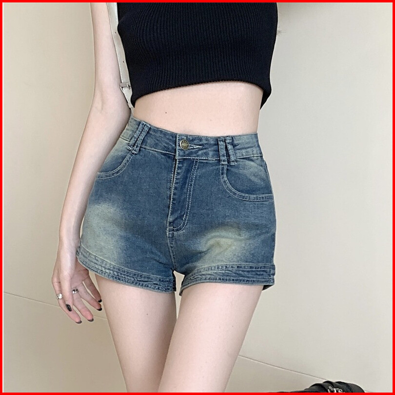Celana Pendek Jeans High Waist A-line Stretch Elegan Ramping Korea Hot Pants Terbaru