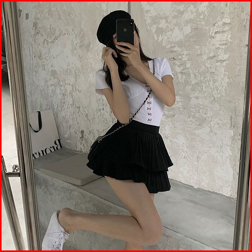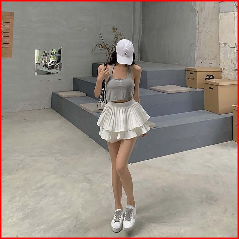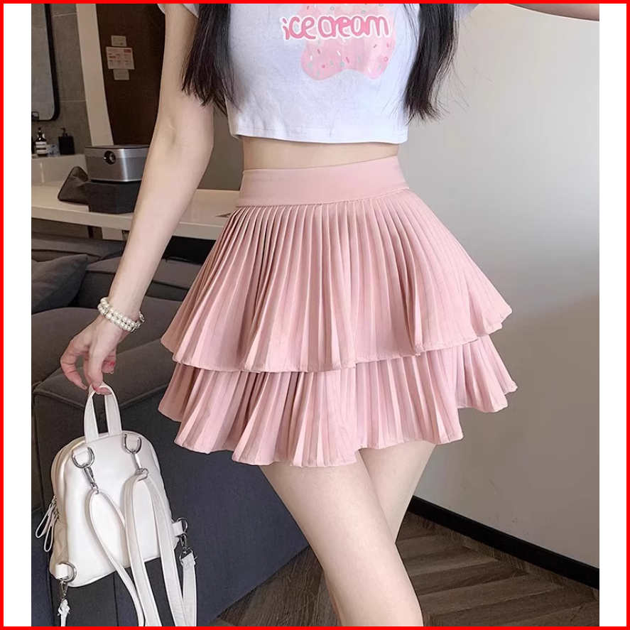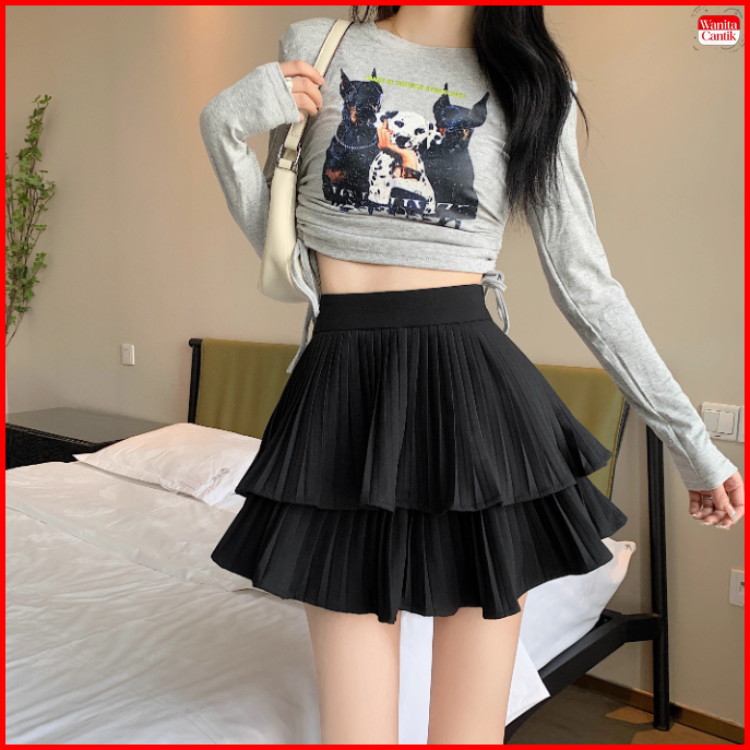 Rok Mini Lipit Wanita Korea High Waist Skirt Rok A-line Pendek Rok Bertingkat Elegan