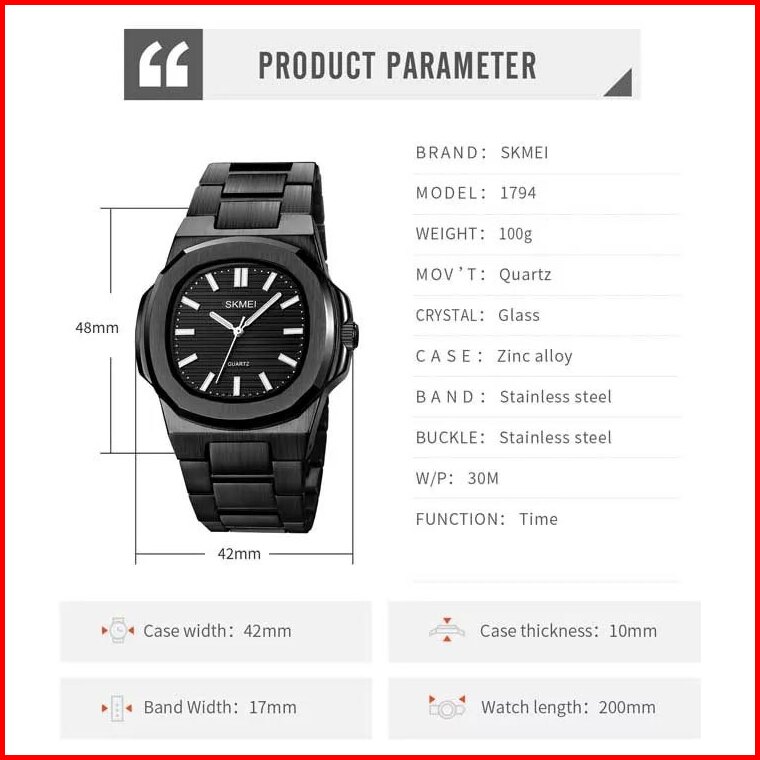 Jam Tangan Pria Skmei Analog 1794 Black Black Water Resistant 30m