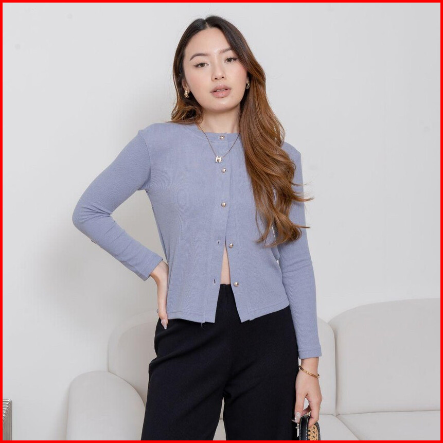 Aijo Lizzie Cardigan - Atasan Wanita Lengan Cardigan Panjang Kancing