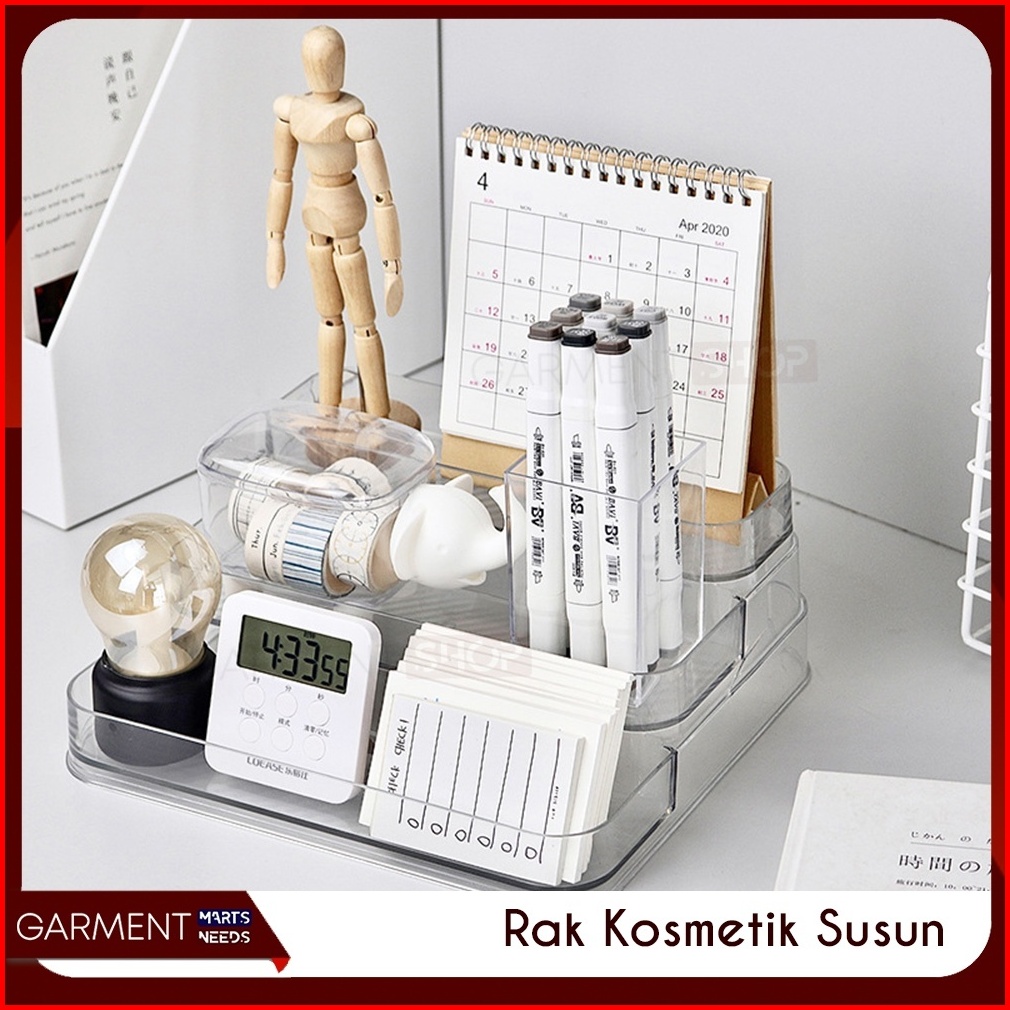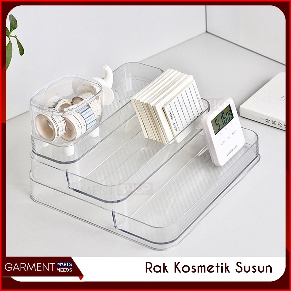 Rak Akrilik 3 Tingkat Organizer Meja Penyimpanan Kosmetik Parfum Rack Susun Transparan Bagus Estetik