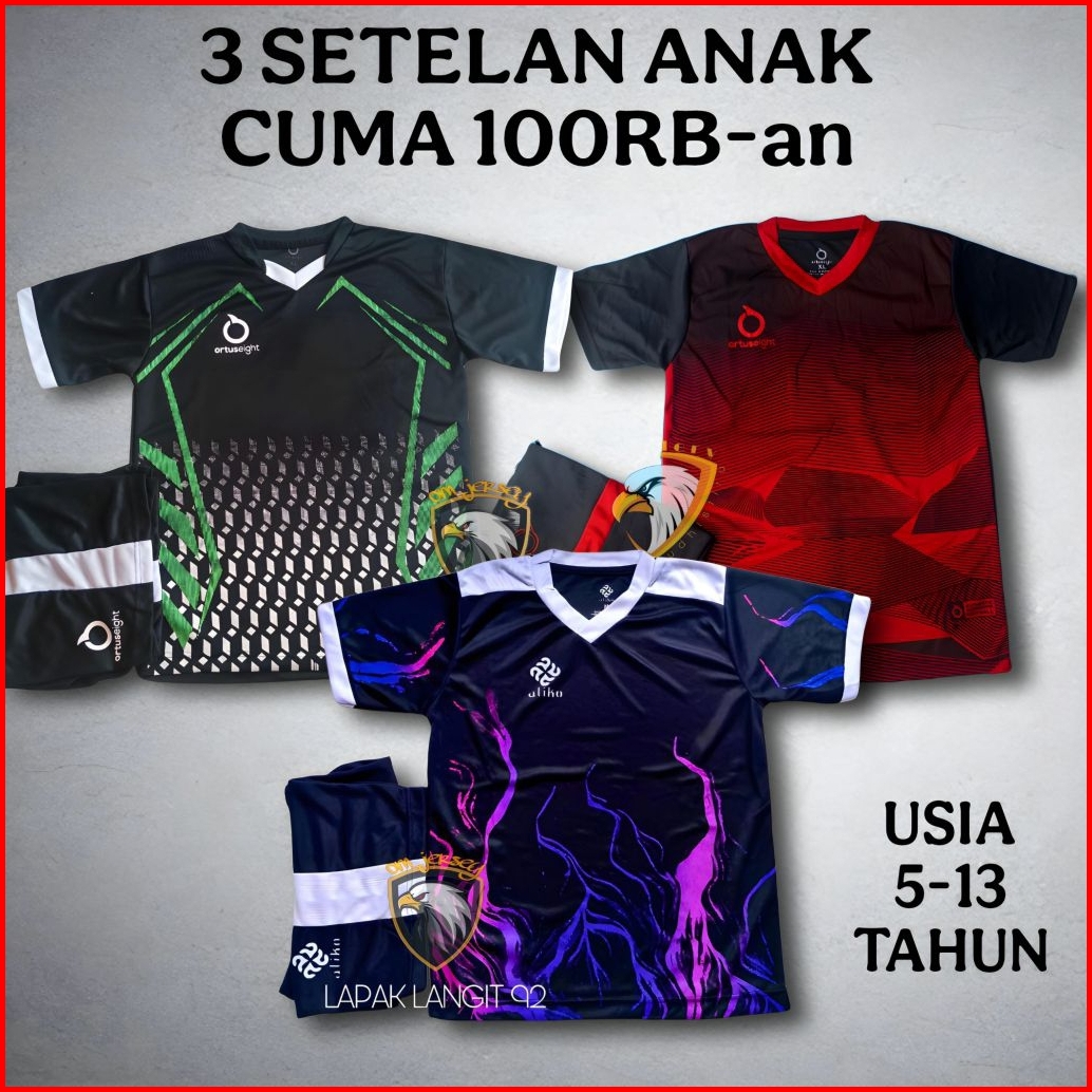 Paket Hemat Isi 3 Setel Kaos Baju Olahraga Anak Usia 5-13 Tahun Sd Ssb Smp Junior Dryfit Menyerap Keringat Setelan Jerse