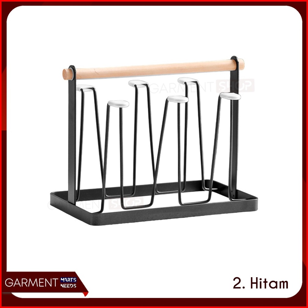 Rak Gelas Organizer Besi Cup Holder 6 Slot Tempat Cangkir Gelas Minimalis Pegangan Kayu Cup Holder