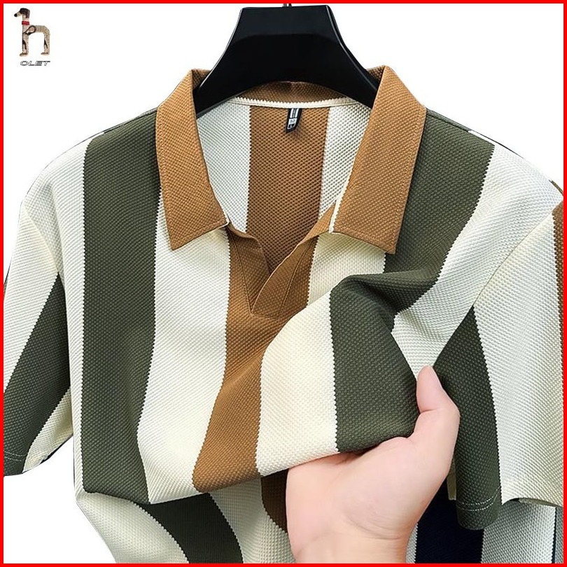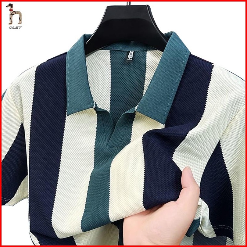 Olet Polo Shirt Pria Kaos Polo Garis Kemeja Polo Bergaris Vertikal Premium