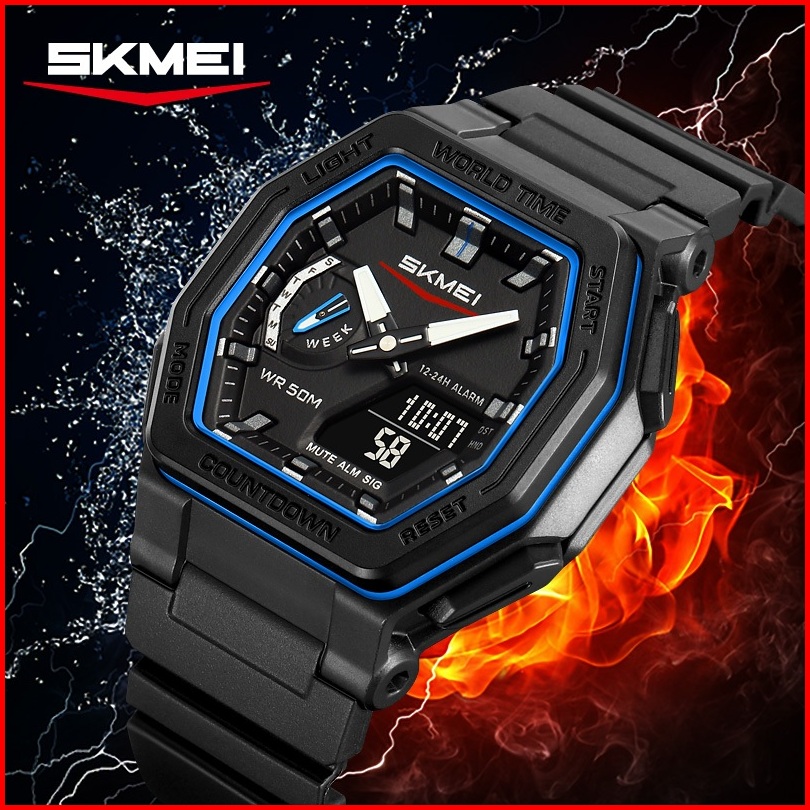 Jam Tangan Digital Skmei 2438 Black Blue Water Resistant 30m