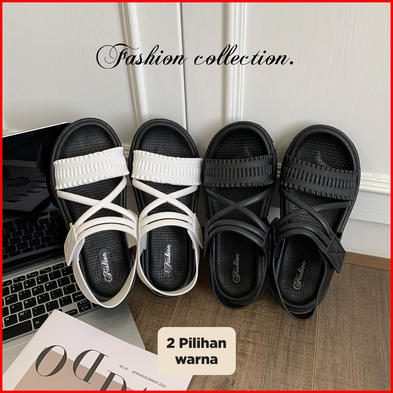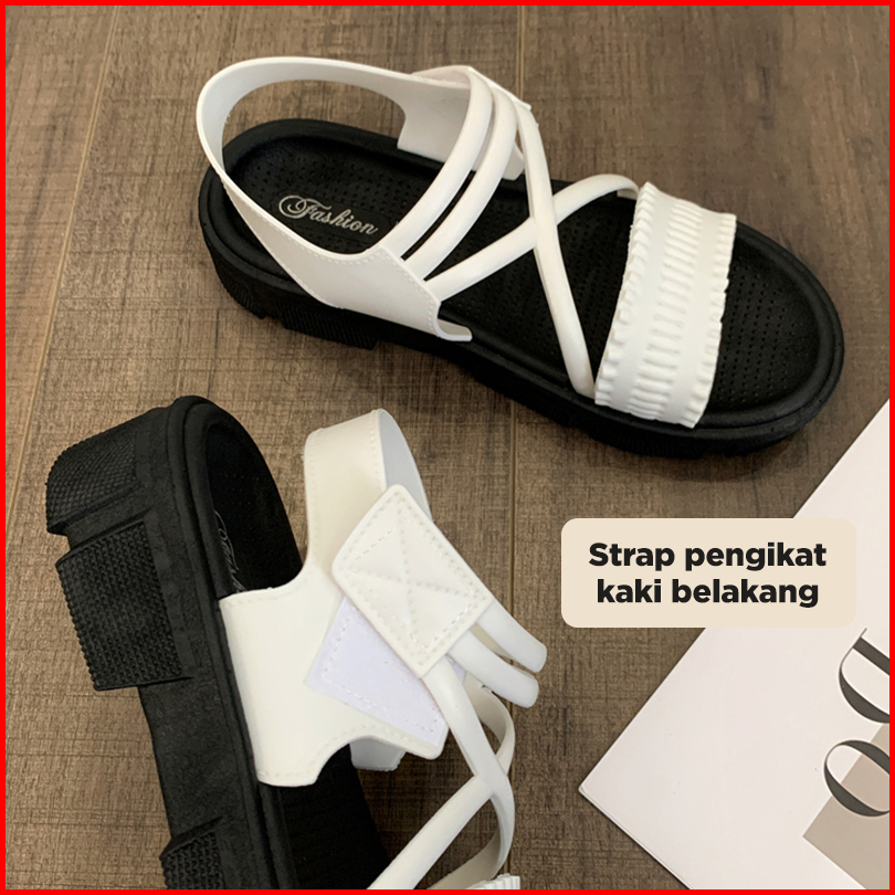 Coolrain Sandal Wanita Model Tali Wedges Wanita Bahan Karet Anti Slip Sandal Slide Kekinian Casual Sandal Wanita Terbaru