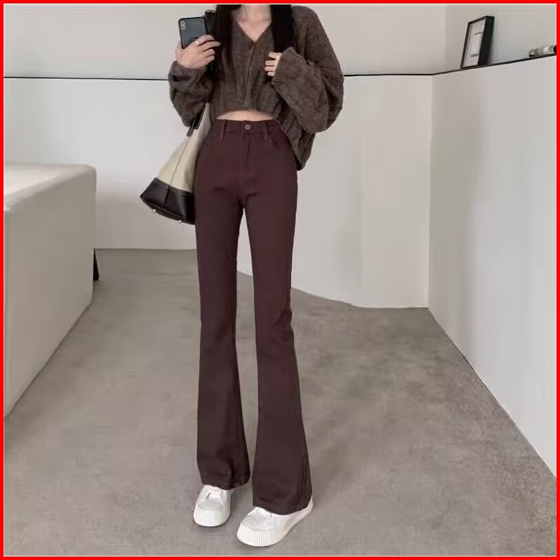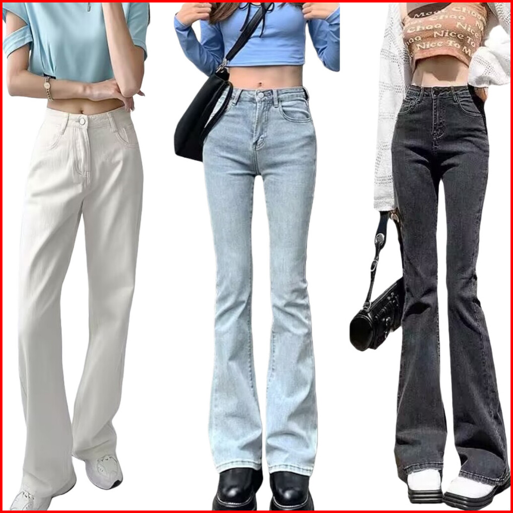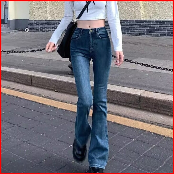 Celana Jeans Wanita Jeans Flare Retro Gaya Korea Wanita Jeans Stretch Berpinggang Tinggi