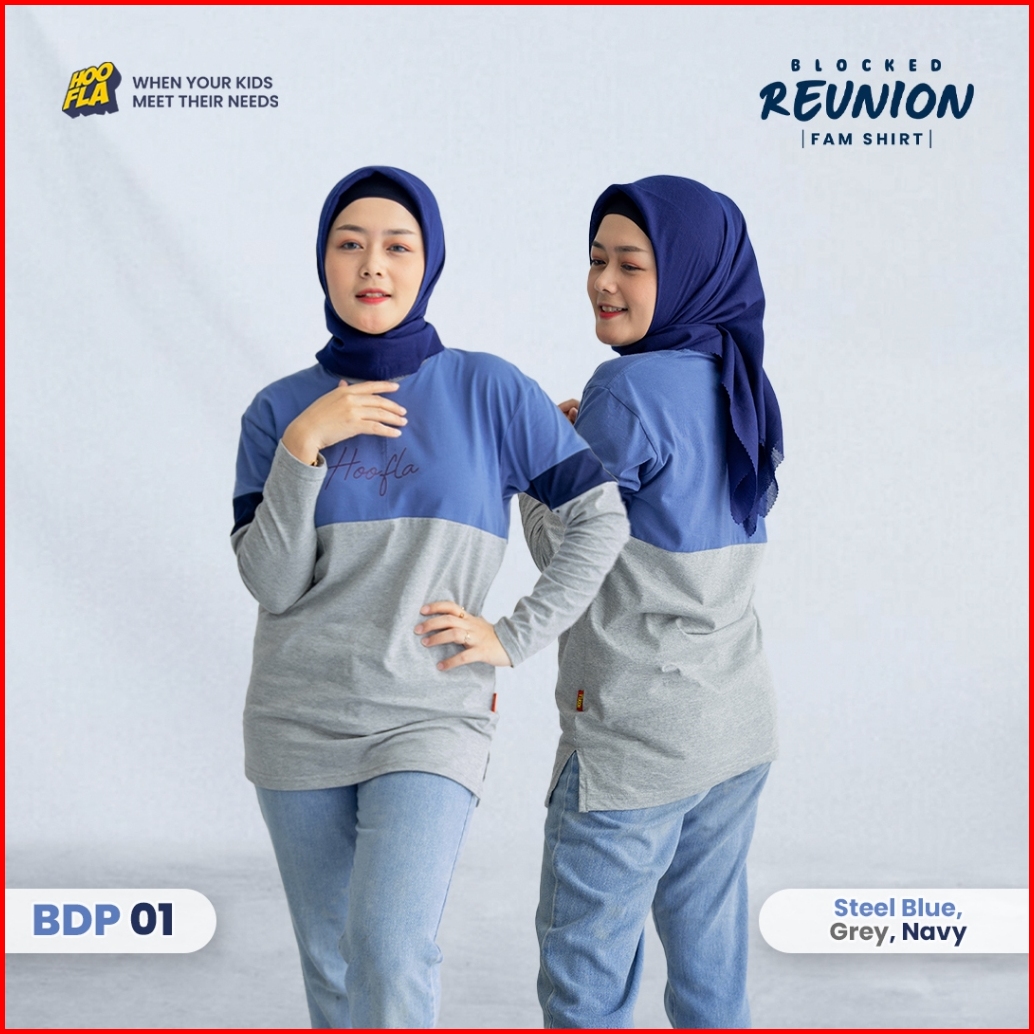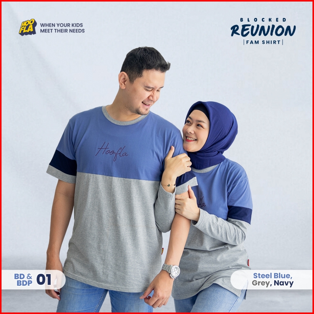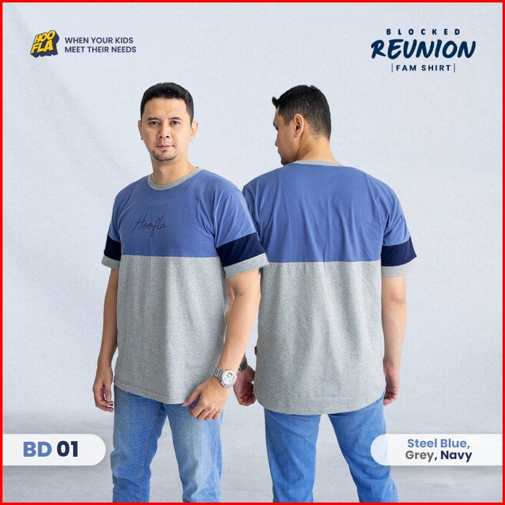 Hoofla Baju Kaos Couple Ayah Ibu Blocked Reunion Fam Shirt Steel Blue