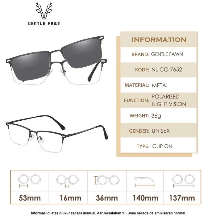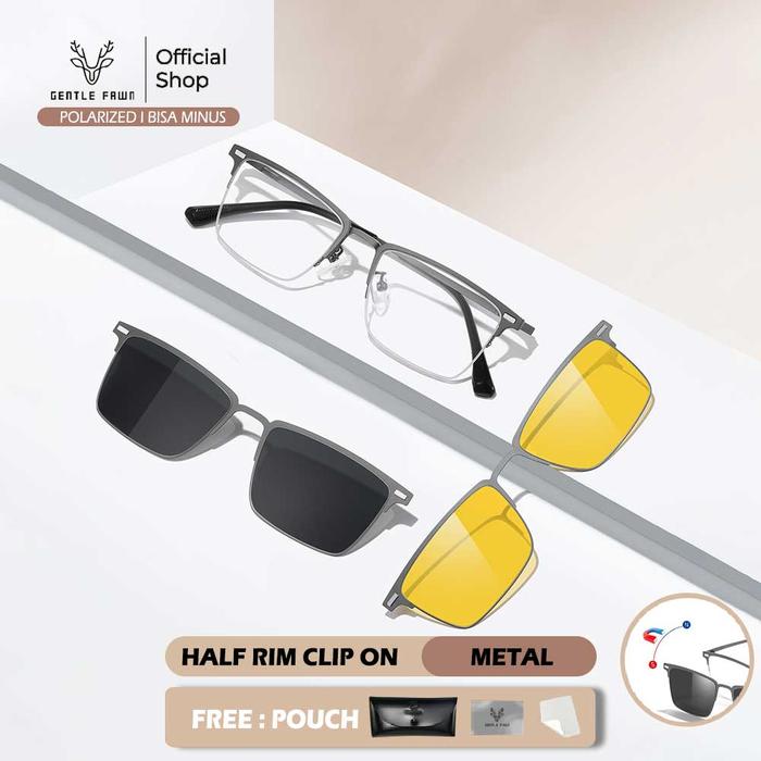 GRAY PINK KACAMATA CLIP ON 3IN1 POLARIZED NIGHT VISION BISA MINUS MODEL KOTAK HALF RIM BAHAN METAL KOKOH BISA UNTUK PRIA DAN WANITA 7652 - BLACK, CLIP ON SAJA