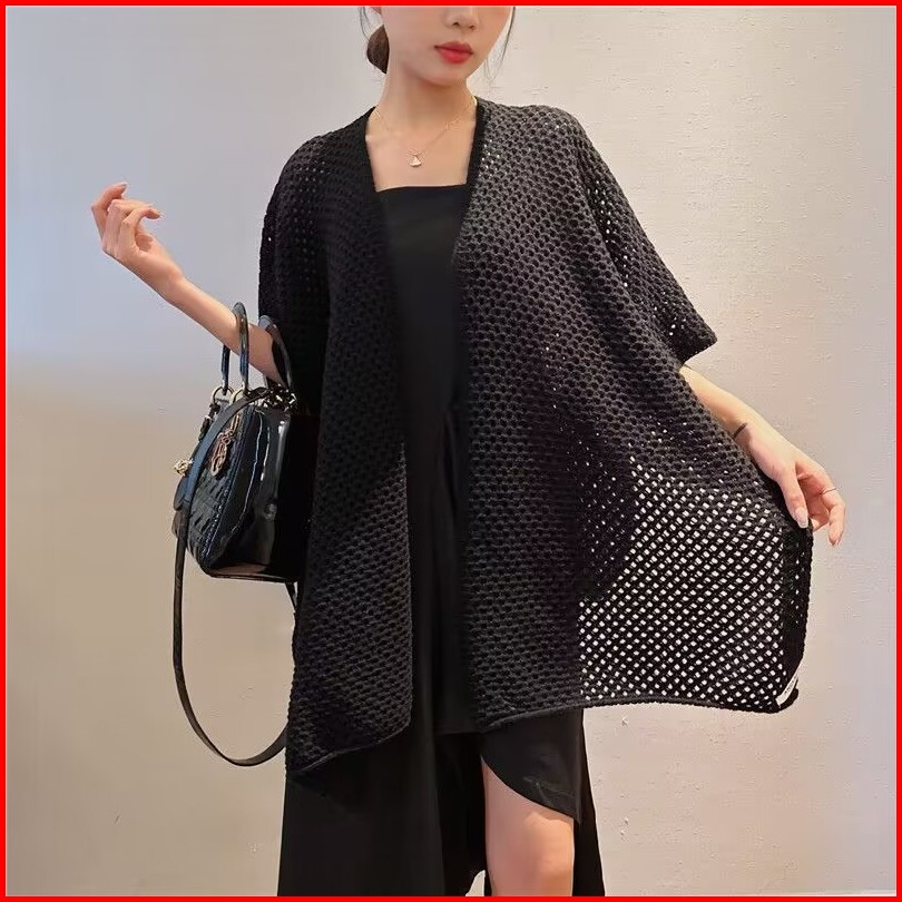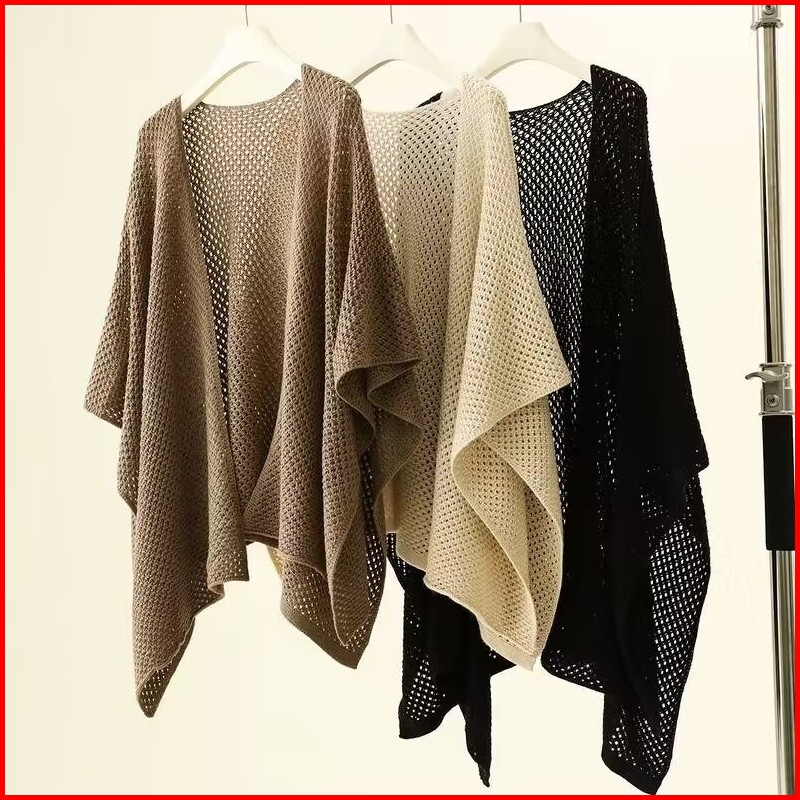 Sweater V-neck Atasan Luar Wanita Selendang Sweater Berongga Longgar Gaya Korea