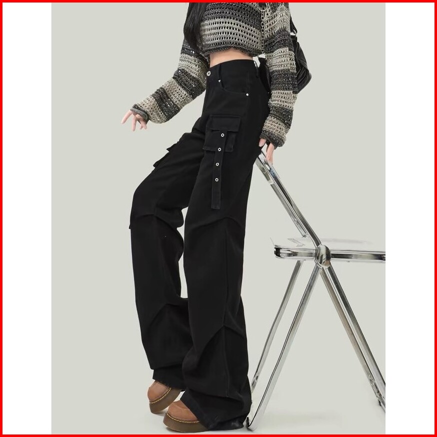 Jeans Kerja Wanita Pinggang Tinggi Jeans Pacar Celana Kargo Wanita Jeans Kaki Lurus Pinggang Tinggi