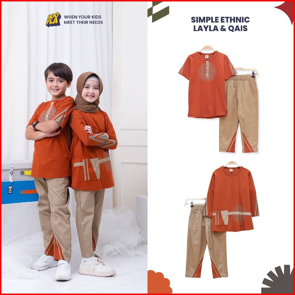 Hoofla Simple Etnic Layla Qais Baju Anak 5-12 Tahun Setelan Casual Muslim Autumn Orange