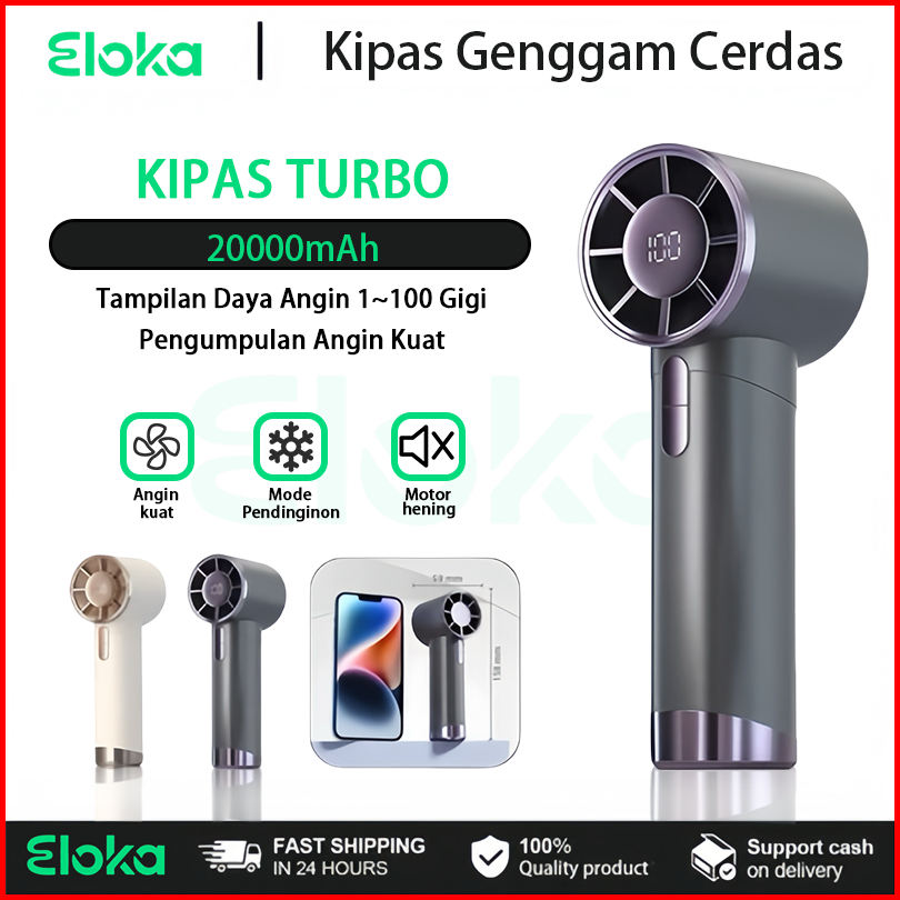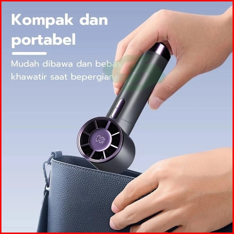 Eloka100 Gear Wind Angin Digital Display Kipas Tangan Fast Charging Baterai Tahan Lama 8-10 Jam Angin Kencang