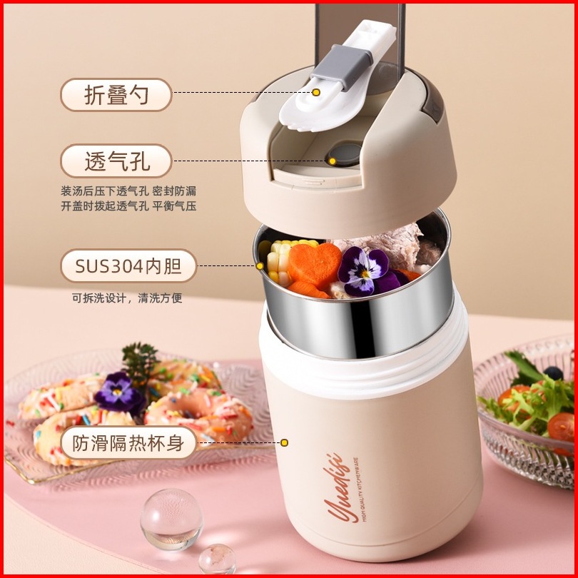 Soup Cup Yuedisi Baby Food Container Sus 304 Breakfast Cup Termos Soup Bubur Mpasi Anti Tumpah Anti Bocor Lunch Box Kota