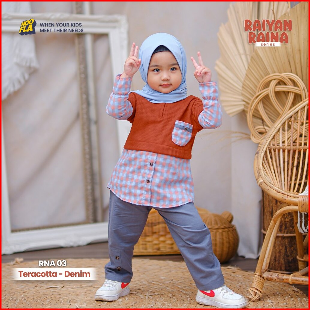 Hoofla Raina Raiyan Series Anak Balita 6 Bulan -5 Tahun Setelan Baju Terracota Denim