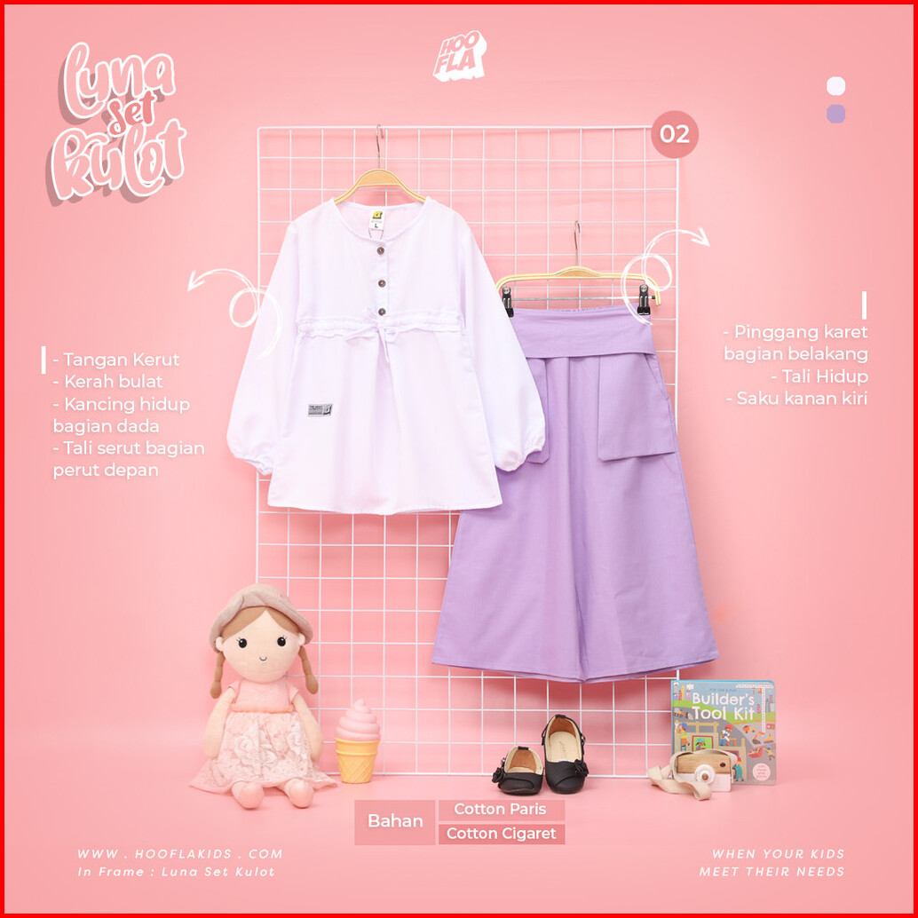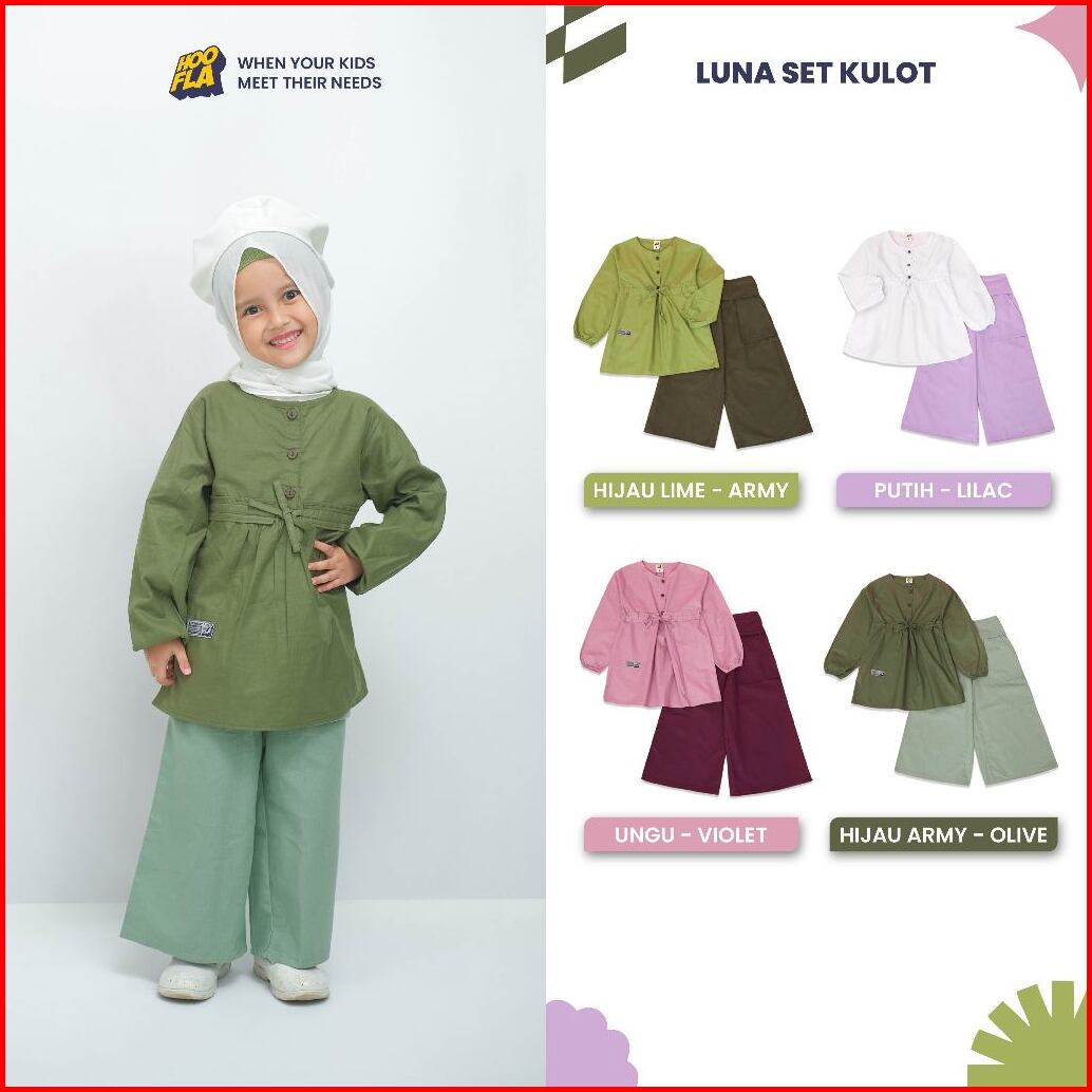 Hoofla Luna Blouse Kulot Anak Perempuan 3-12 Tahun Setelan Muslimah
