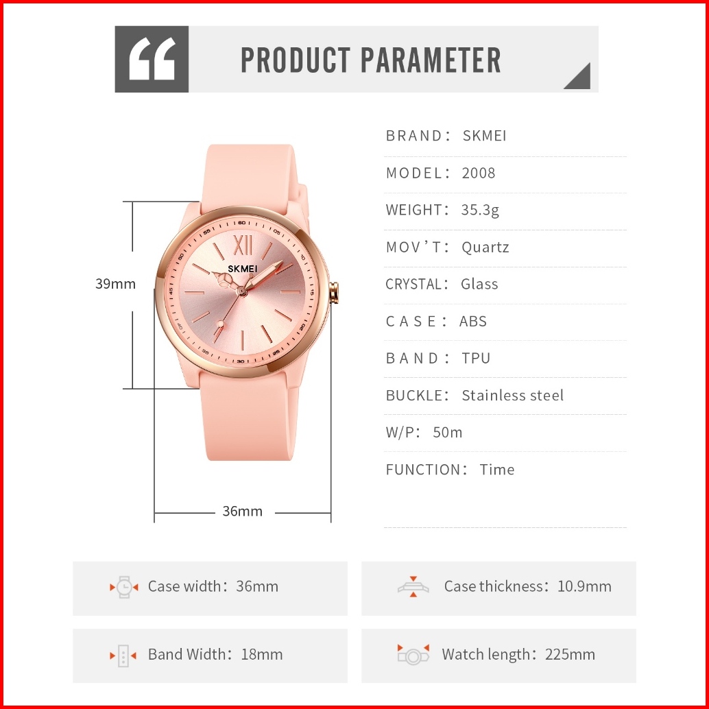 Jam Tangan Wanita Analog Skmei 2008 Pink Water Resistant 30m