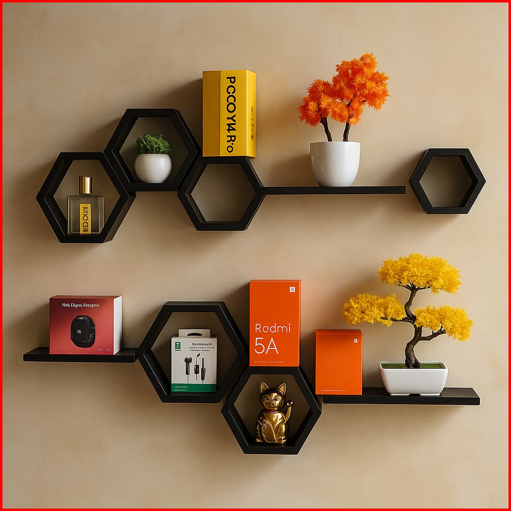 Rak Dinding Hexagonal Hiasan Dinding Dekorasi Rumah Rak Gantung Minimalis