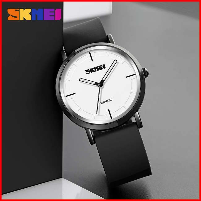 Jam Tangan Pria Analog Skmei 2050 Black White Water Resist 30m