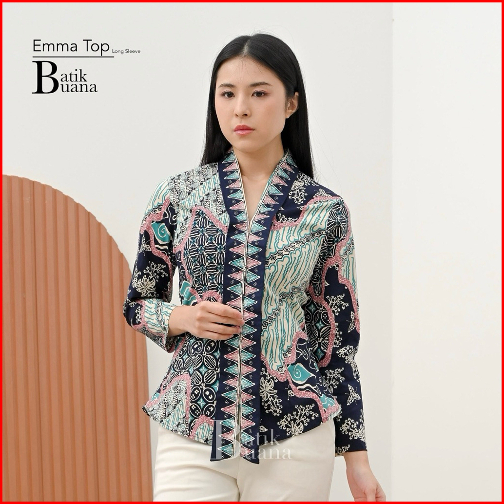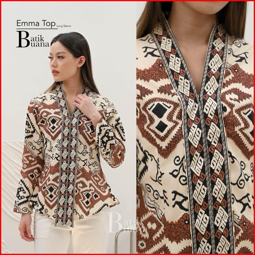 Emma Top Long Sleeve - Atasan Batik Wanita Lengan Panjang - Batik Wanita Premium - Batik Kantor Keluarga Seragam - Blus