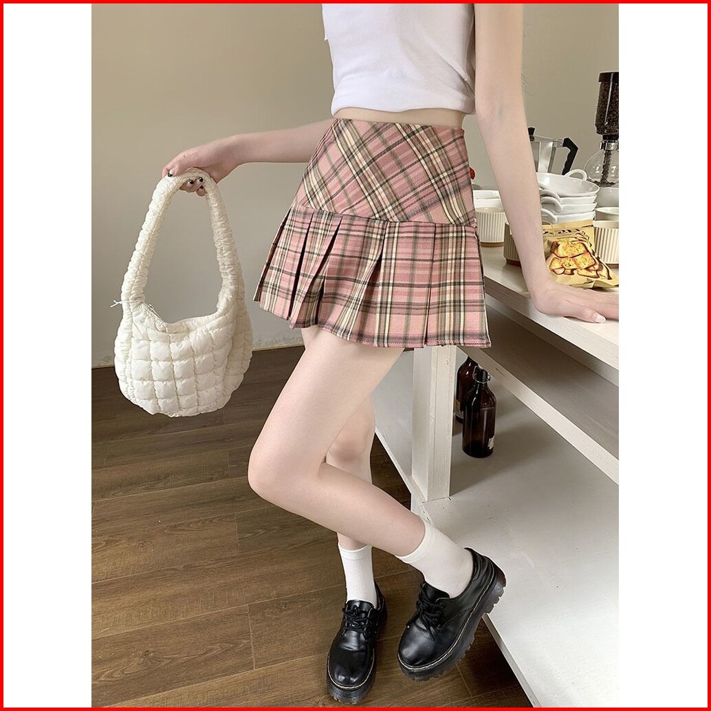 Rok Mini Kotak-kotak Wanita High Waist Jepang Jk Rok Plisket Rok Pendek A-line Sekolah Remaja