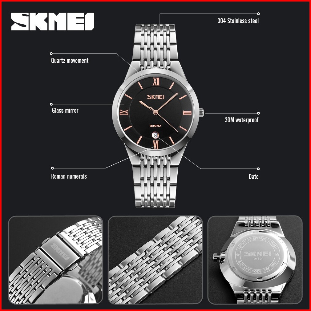 Jam Tangan Wanita Analog Skmei 9139 Silverblack Water Resistant 30m