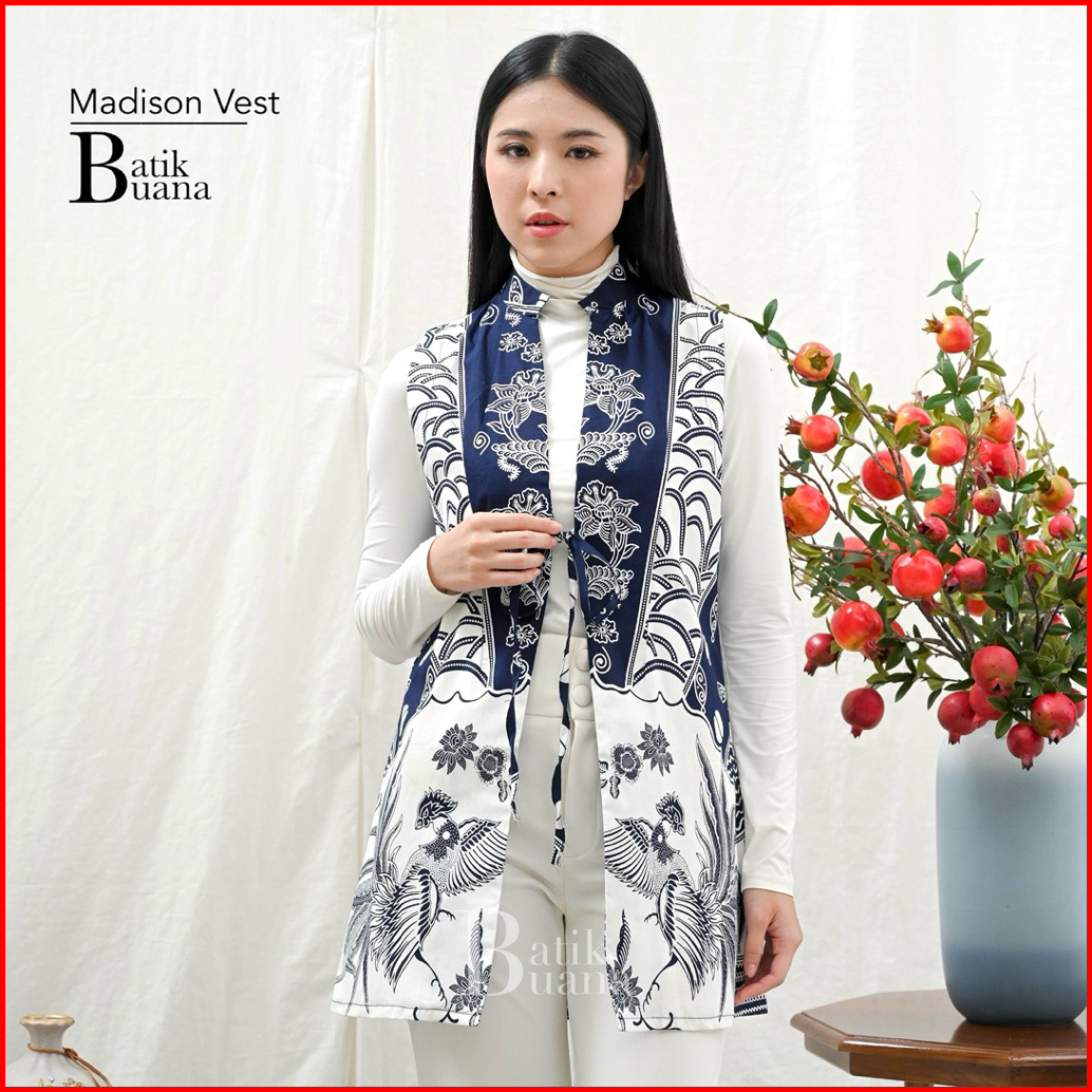 Madison Vest - Long Outer - Atasan Batik Modern Wanita Lucu Cantik - Batik Wanita Modern - Batik Etnik - Batik Batwing -