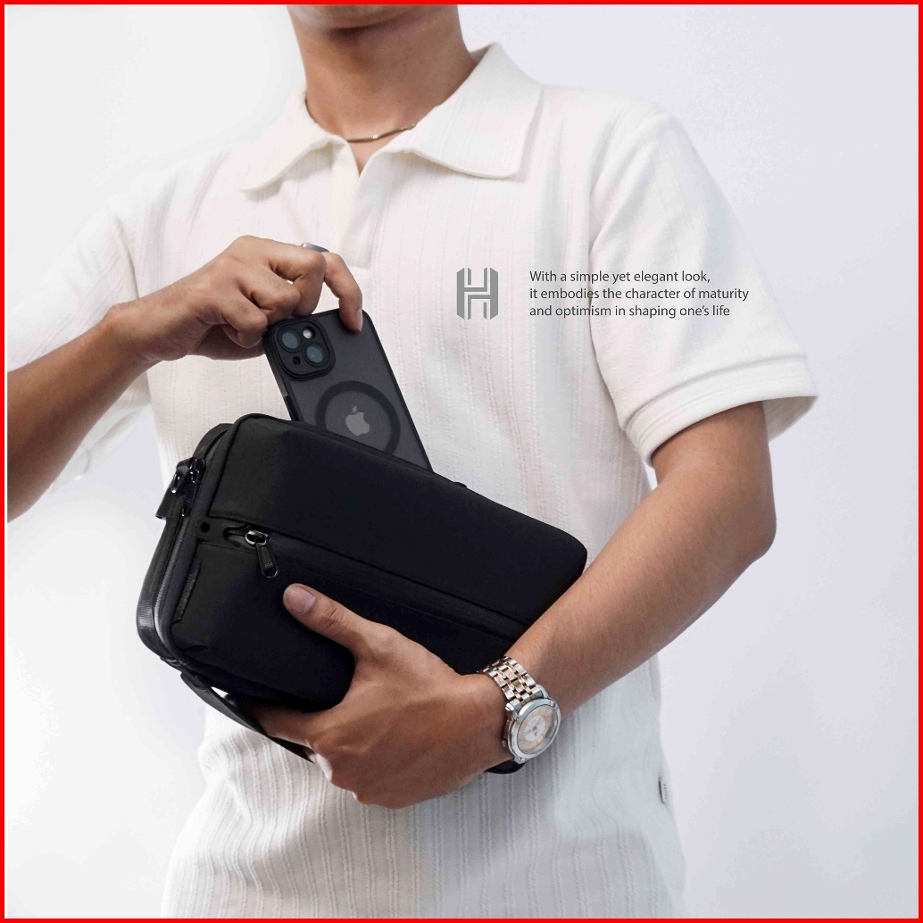 Heimild Hugo Hand Bag Tas Selempang Pria Tas Tangan Premium Bahan Filament Anti Bara Clutch Bag Anti Air