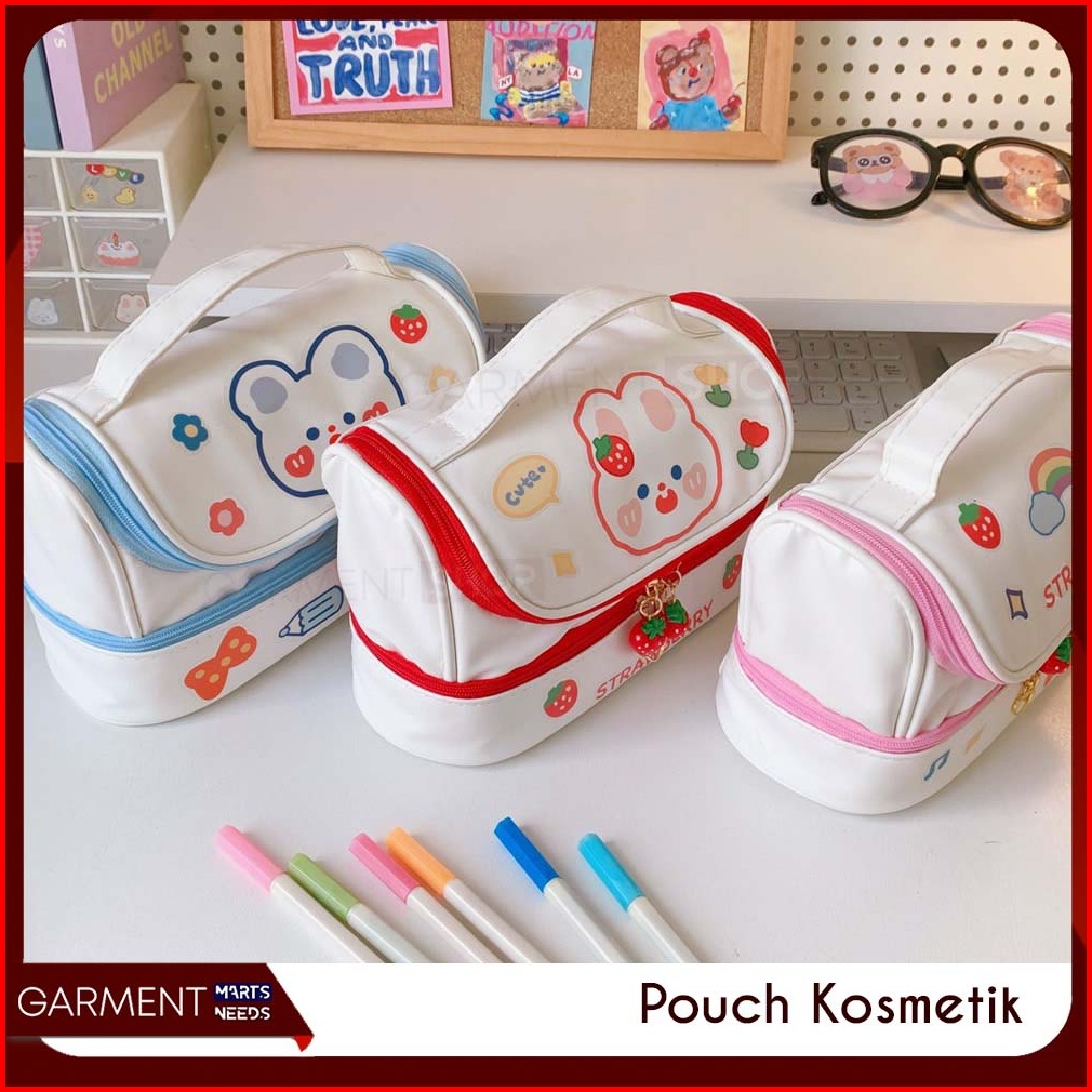 Tempat Pensil Anak Import Lucu Pencil Case Korea Travel Make Up Pouch Diy Sticker Serbaguna Stiker Kelinci Beruang
