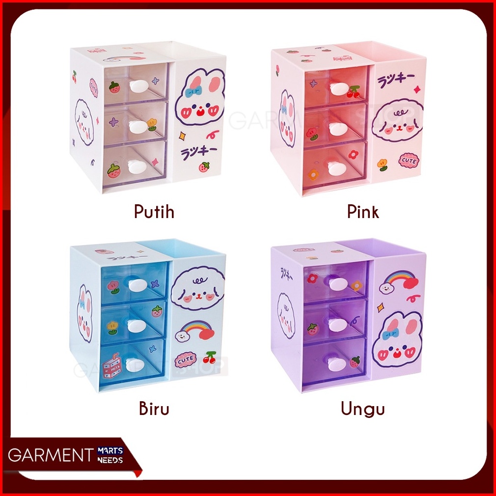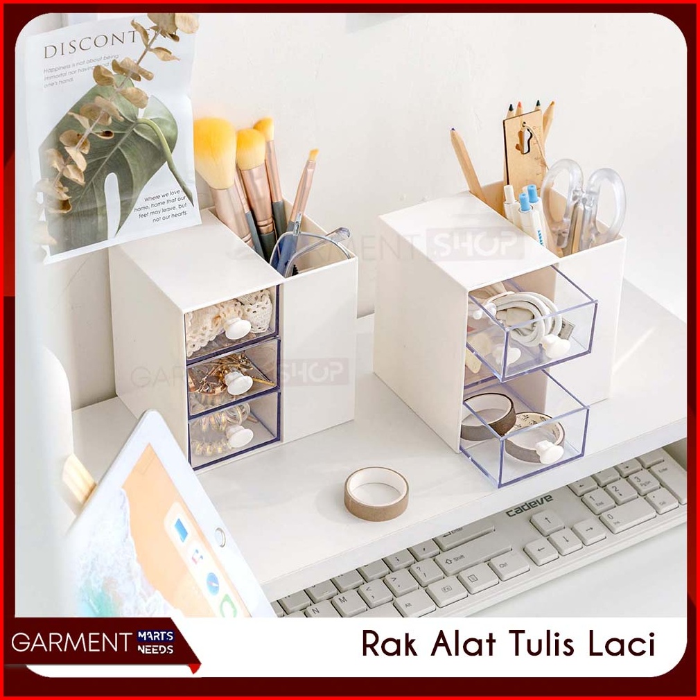 Tempat Make Up Storage Organizer Kotak Pensil Meja Laci Mini 3 Susun Serbaguna Alat Tulis Putih Estetik