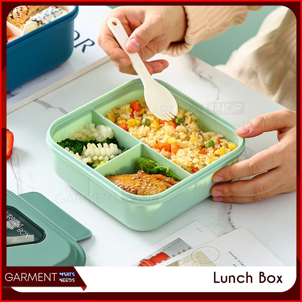 Kotak Makan Bekal Sekolah Lunch Box 3 Sekat Dengan Tutup Saus Sambal Free Sendok Garpu
