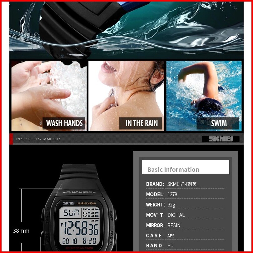 Jam Tangan Pria Digital Skmei 1278 Blue Water Resistant 50m