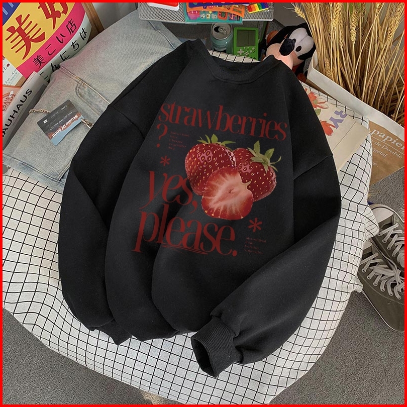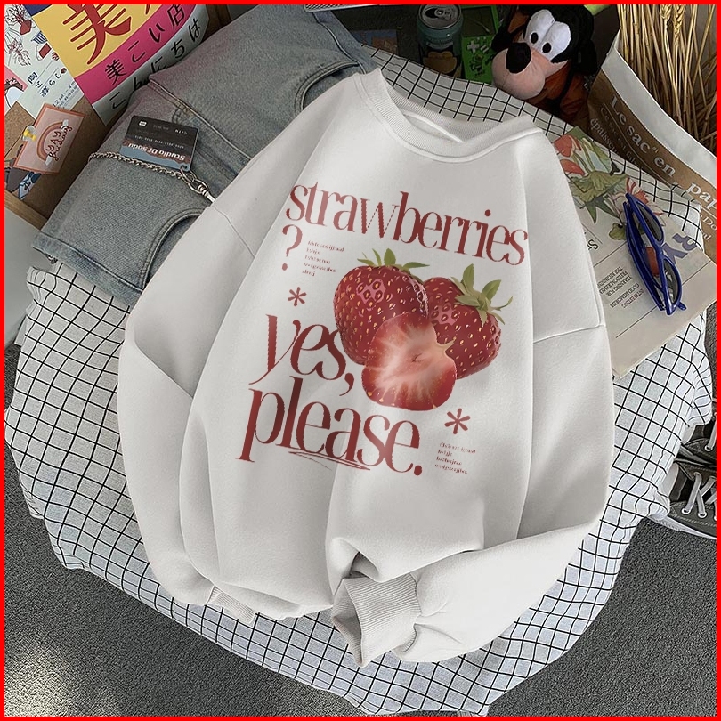Forteid Sweater Lengan Panjang Oversized Street Style Korean Style Switer Wanita Oversize Kaos Cetakan Strawberry Letter