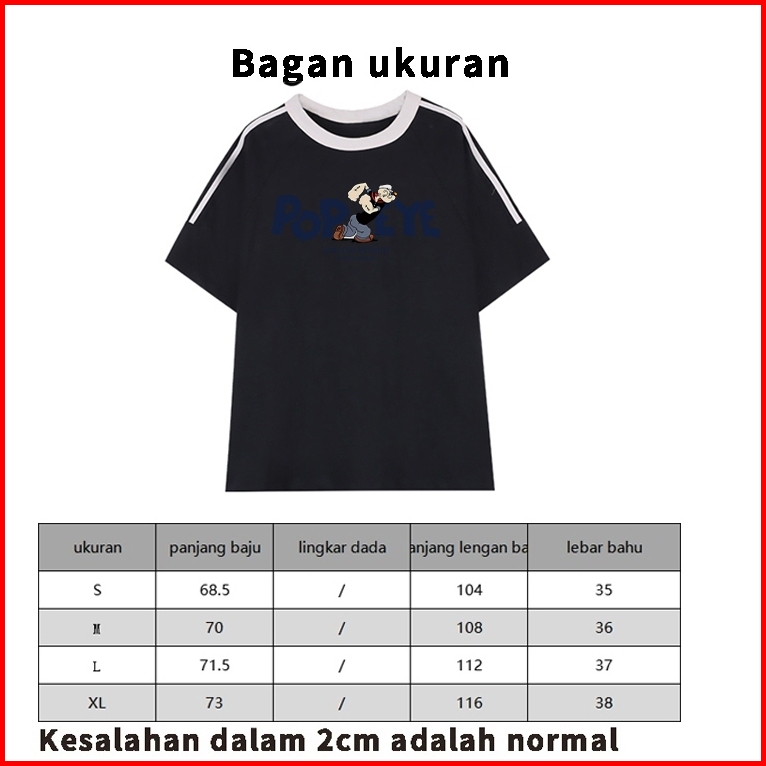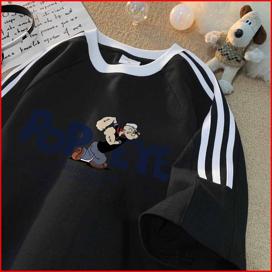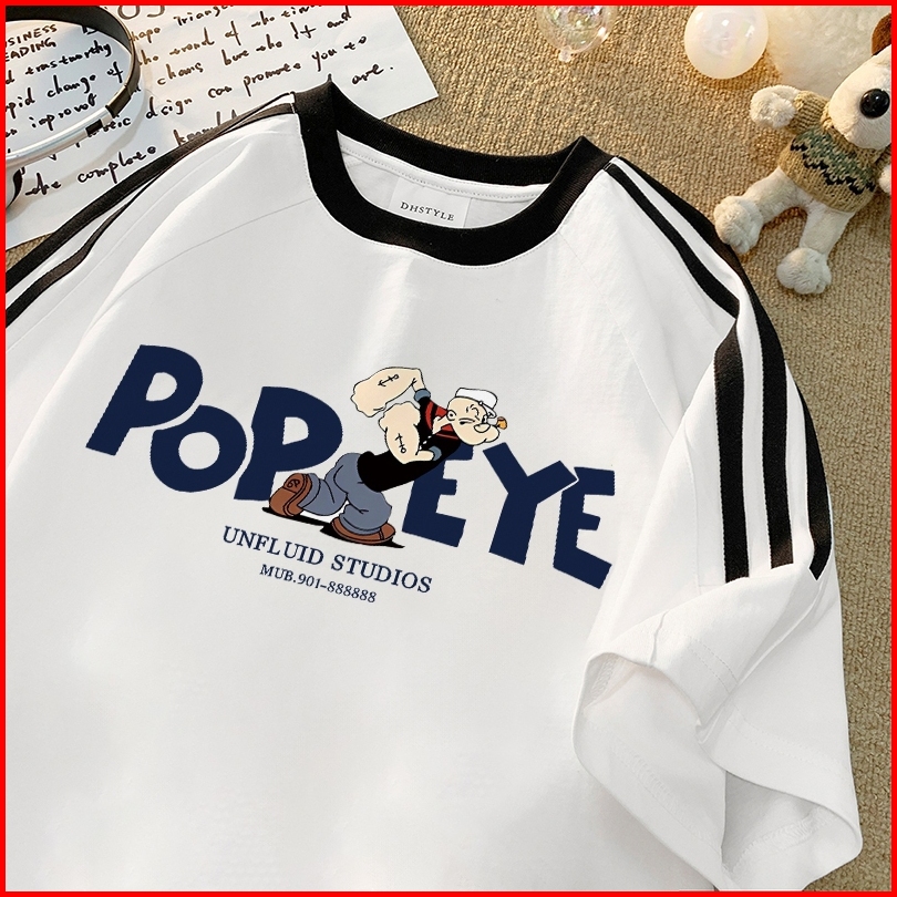 Forteid Cetakan Merek Trendi Retro Baju Oversize Pola Popeye Korean Style Kaos Longgar
