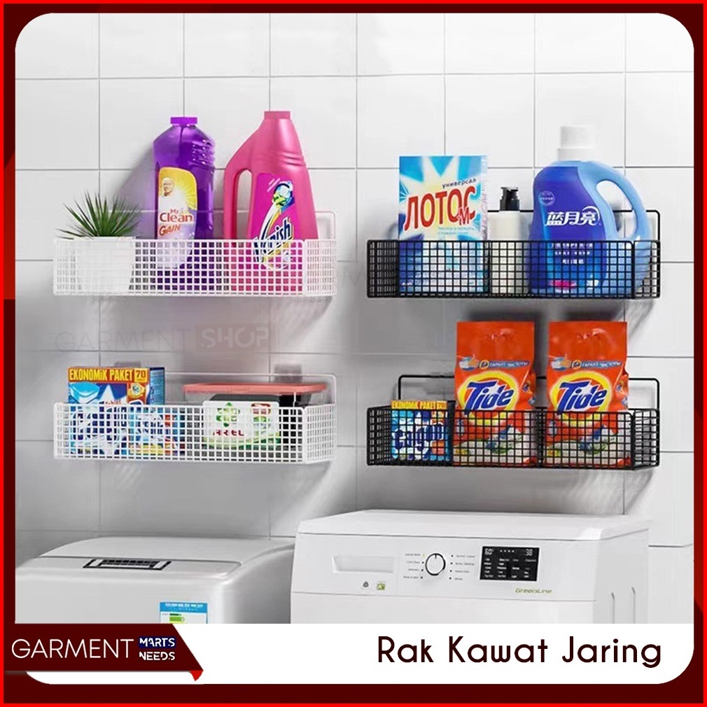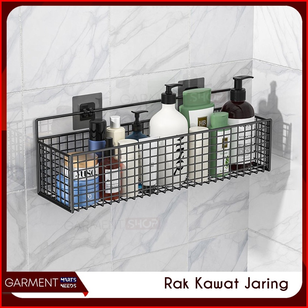 Rak Gantung Kamar Mandi Sabun Besi Hitam Keranjang Jaring Kotak Tempat Deterjen Tempel Tanpa Bor