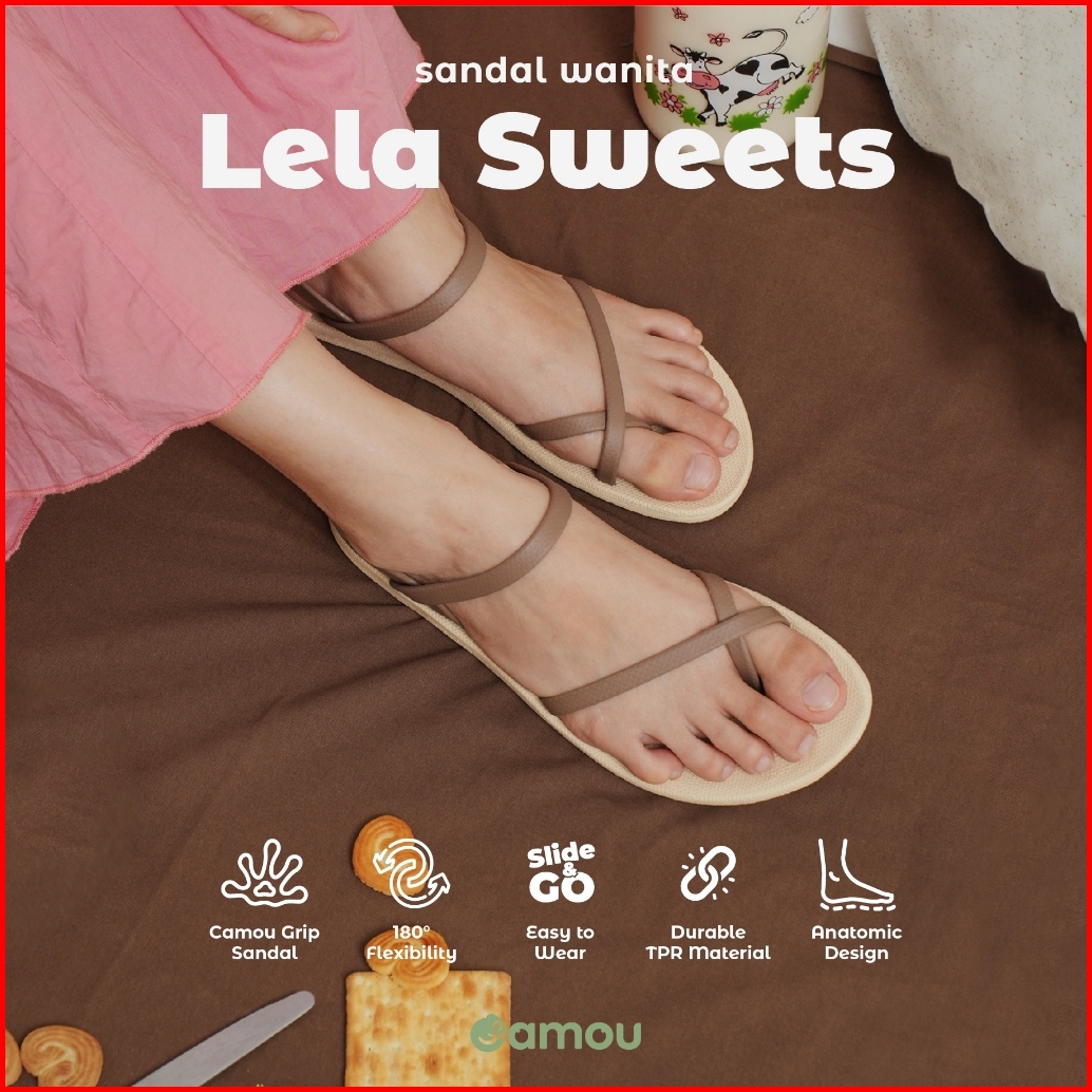 Lela Sweets Sandal Tali Silang Anti Air Sandal Wanita Terbaru Nyaman Full Karet Tidak Licin - Camou
