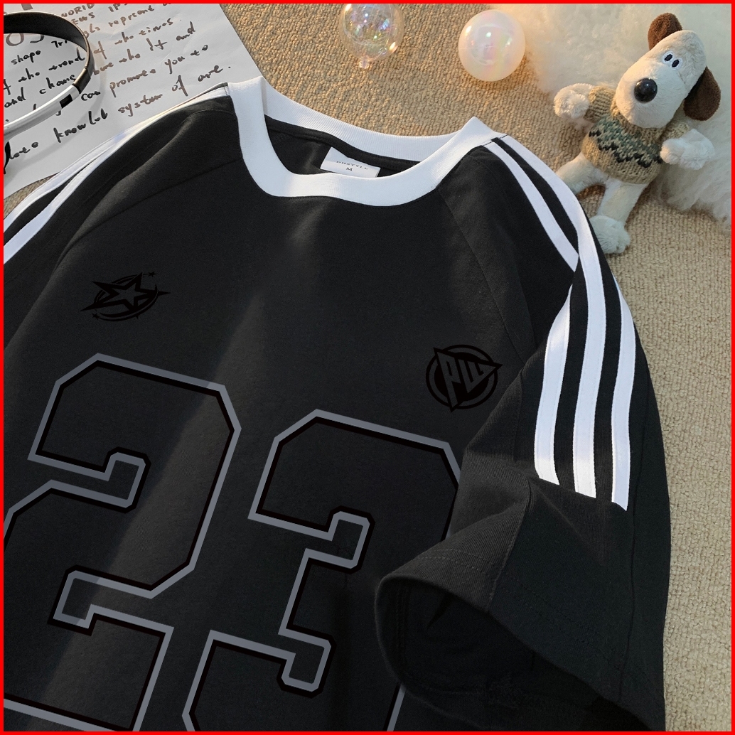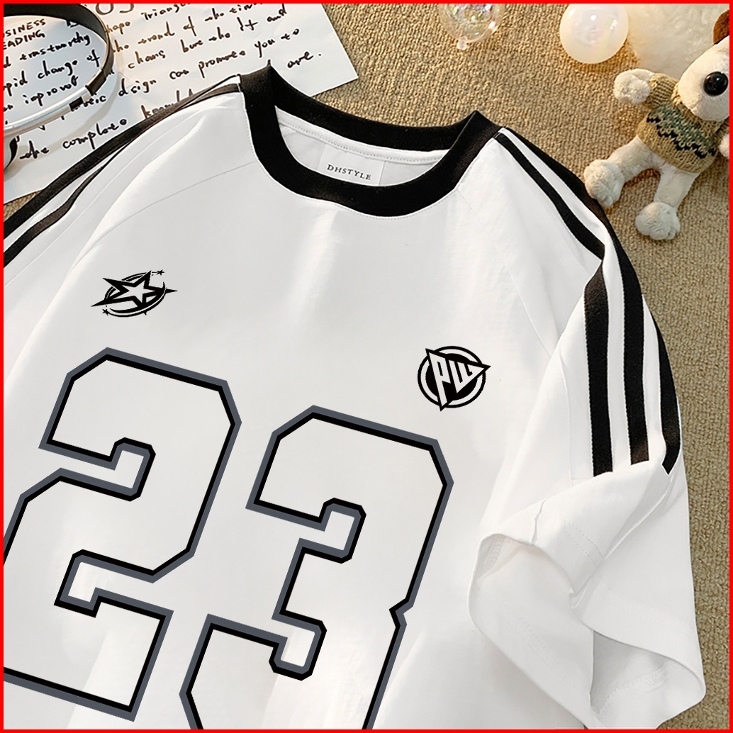 Forteid Cetakan Merek Trendi Retro Baju Oversize Pola Angka 23 Baju Club Korean Style Kaos Longgar