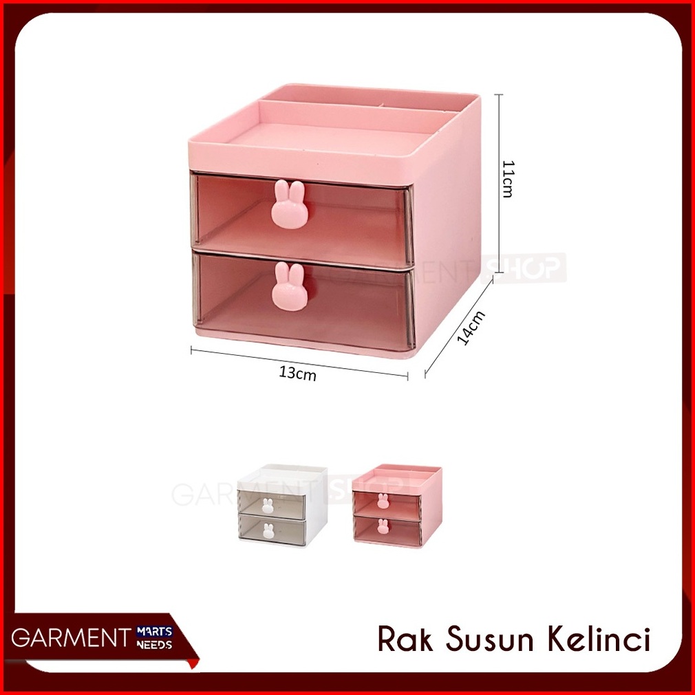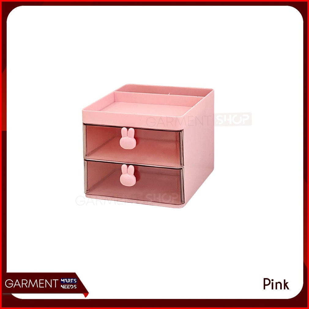 Laci Mini 2 Susun Tempat Penyimpanan Alat Tulis Meja Stationery Rak Laci Tarik Motif Kelinci Estetik