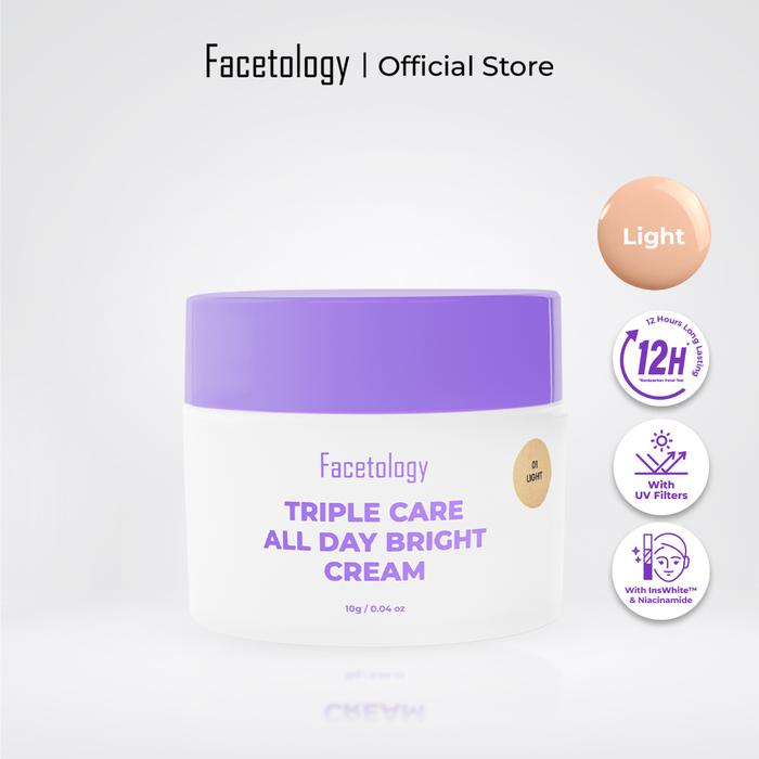[NEW LAUNCH] FACETOLOGY TRIPLE CARE ALL DAY BRIGHT CREAM 10GR - DAY CREAM SHADES LIGHT NEUTRAL WARM DENGAN MEDIUM COVERAGE BANTU MENCERAHKAN - LIGHT