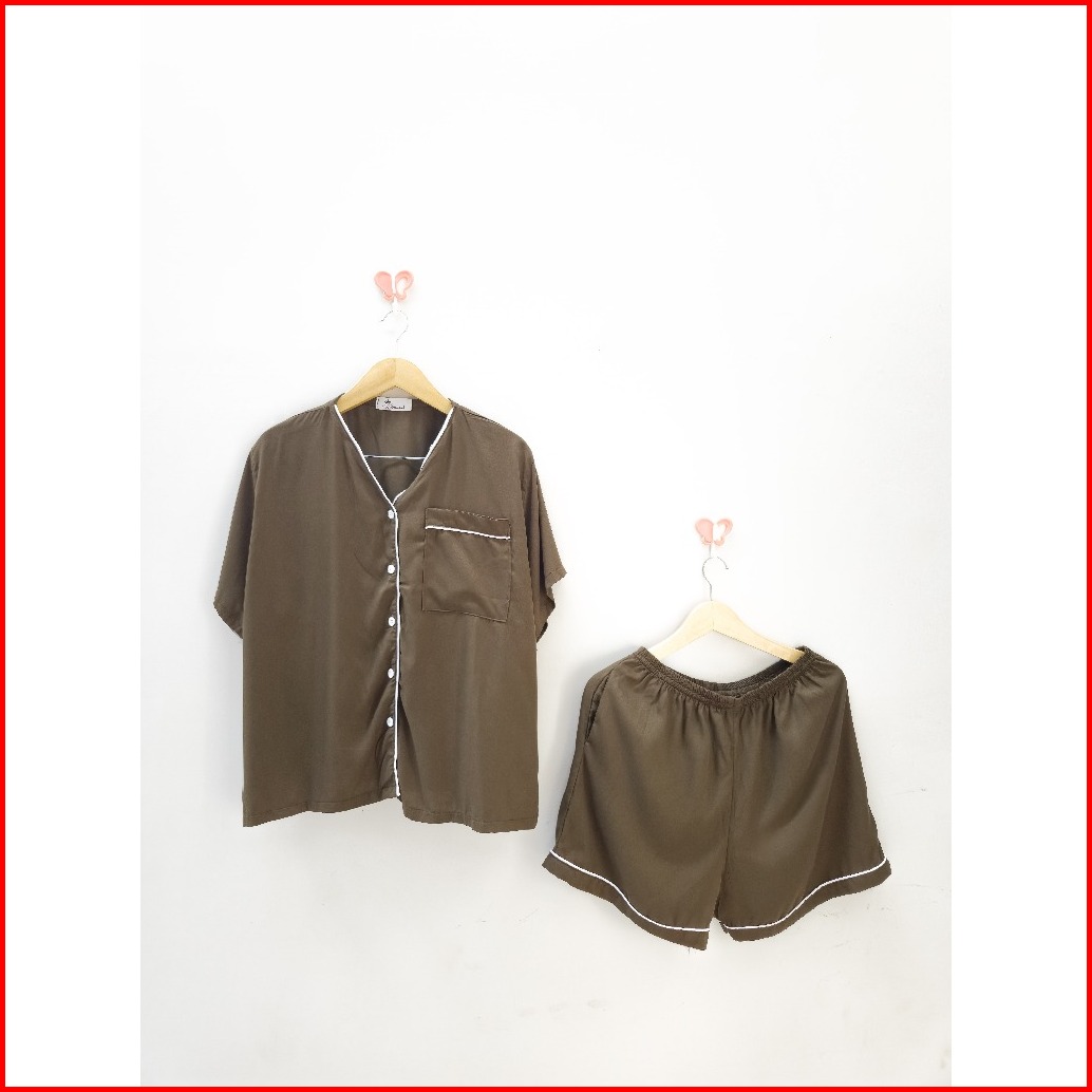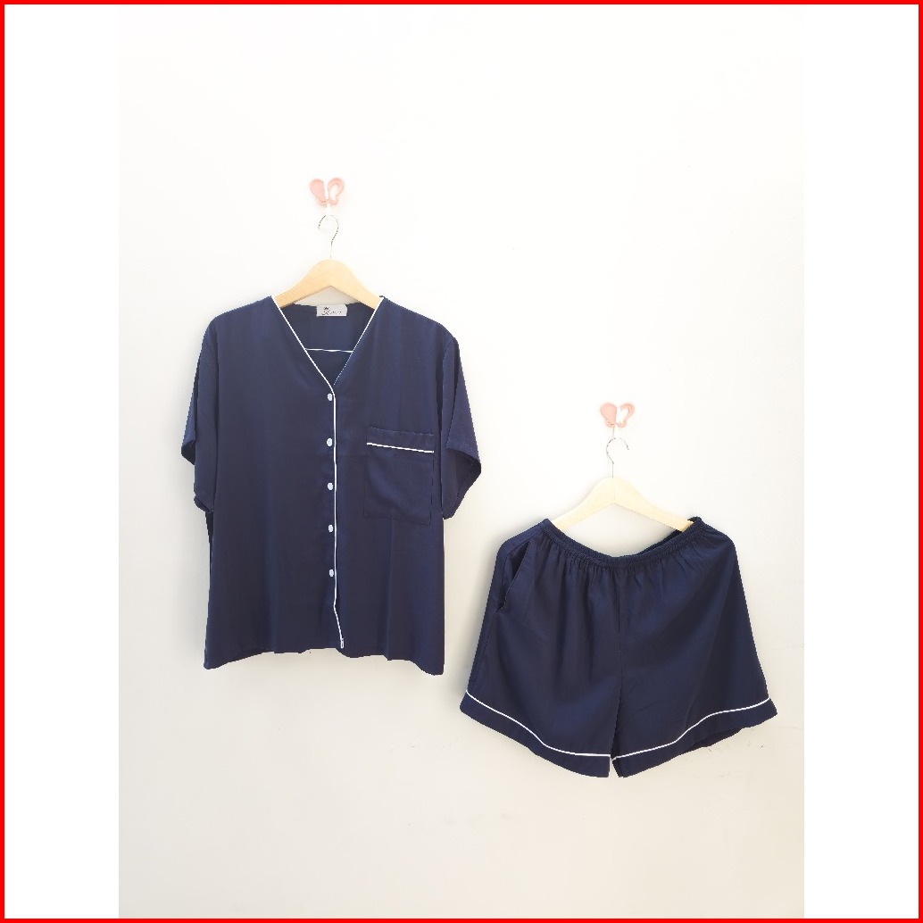 Oneset Zura Home Dress List Pendek Setelan Piyama Kancing Daster Busui Rayon Jumbo Gemes